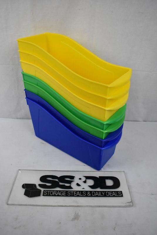 Classroom Book Bins, Qty 7: 3 yellow, 2 green, 2 blue, Interlocking