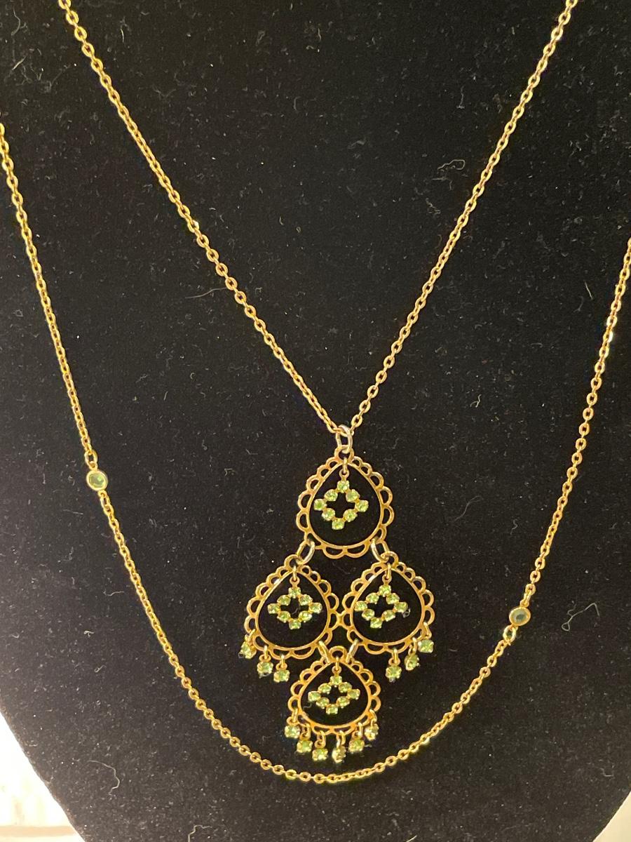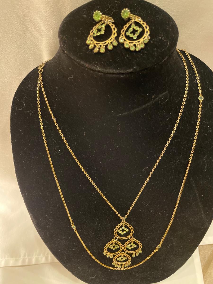 Classy gold tone and light green multilayer necklace & clip on