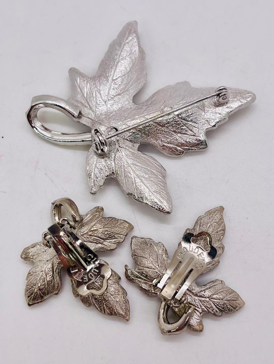 Earrings seem slightly darker than the pin. There are a couple of missing stones.