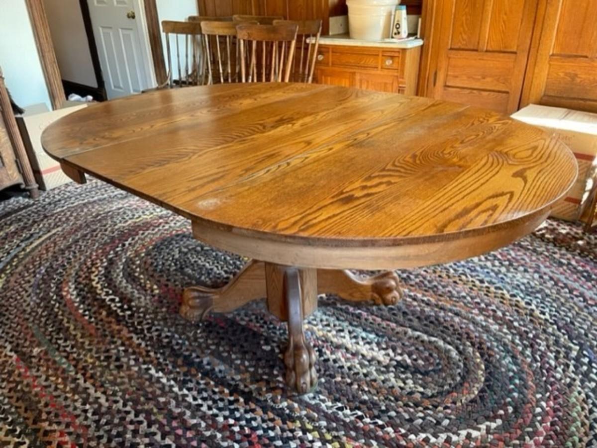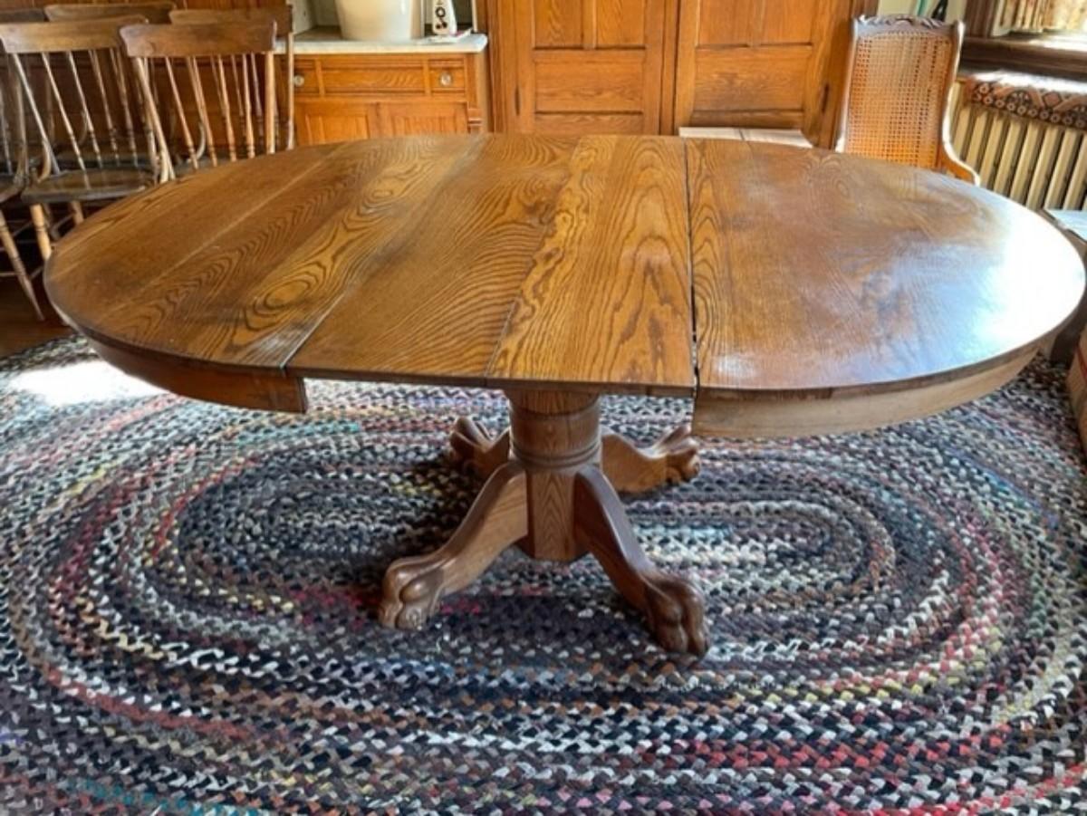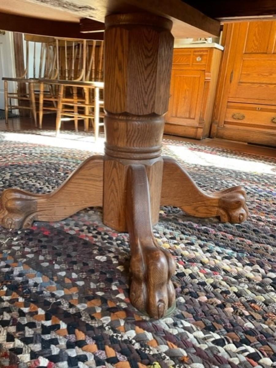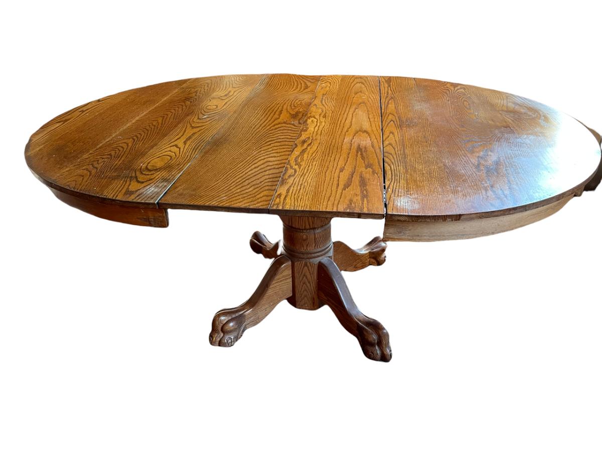 Claw Footed Figured Oak Wood Dining Table With Leafs Seats Up To Eight - jb11279