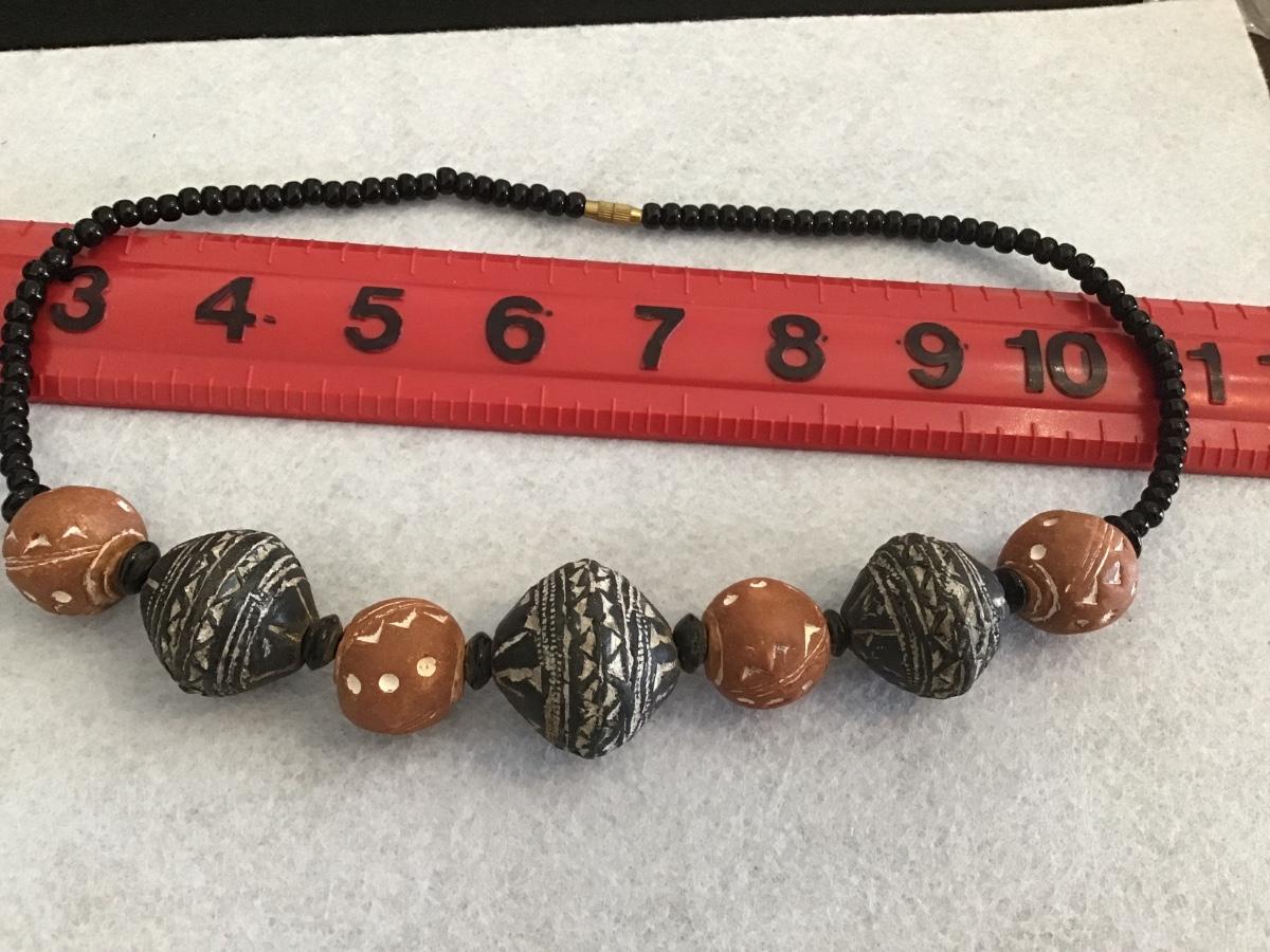 Clay Bead Black Glass Vintage Necklace
