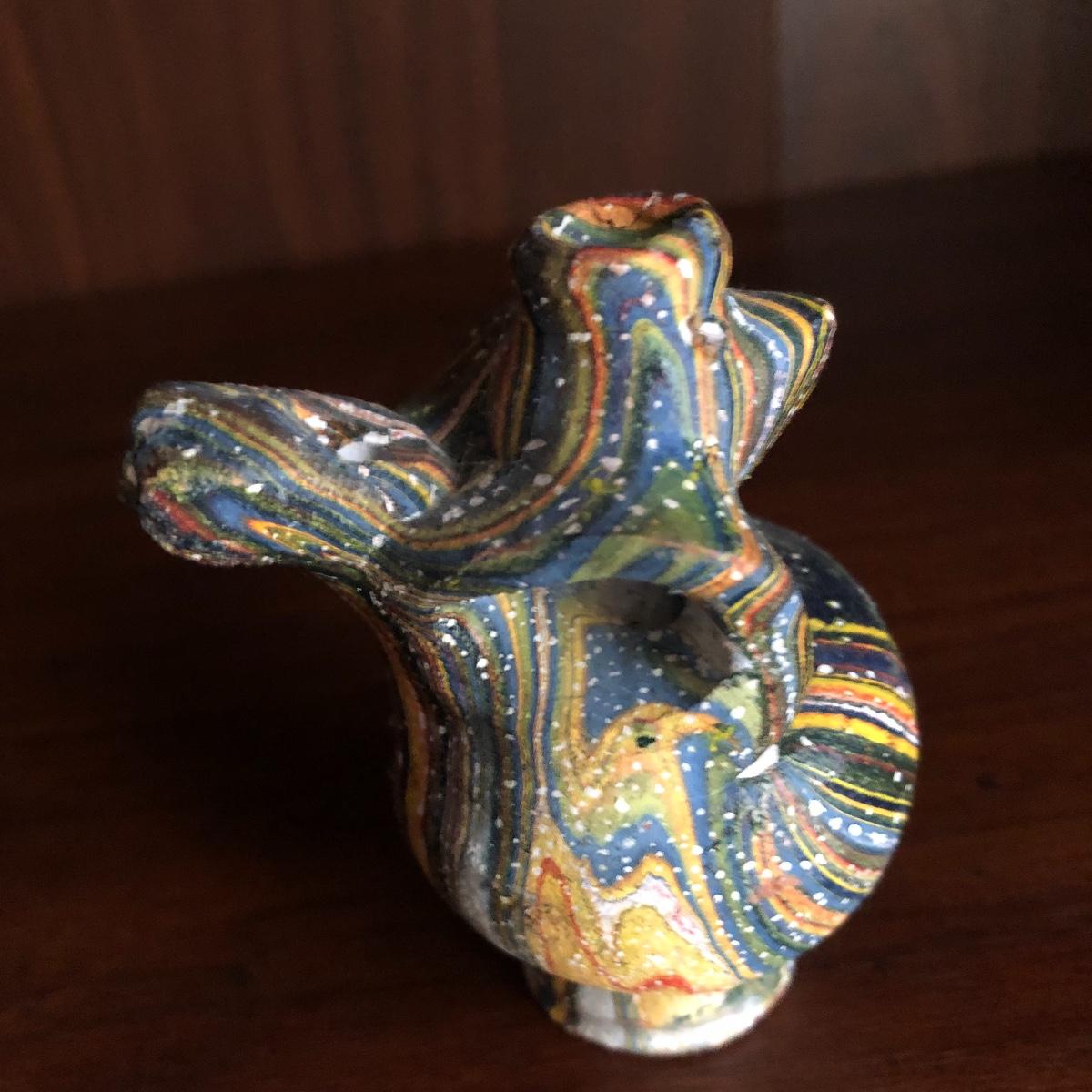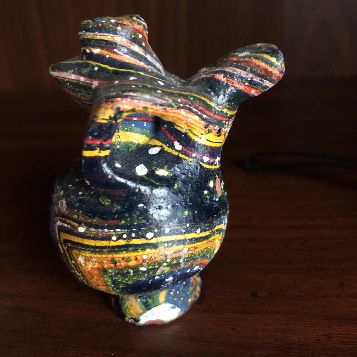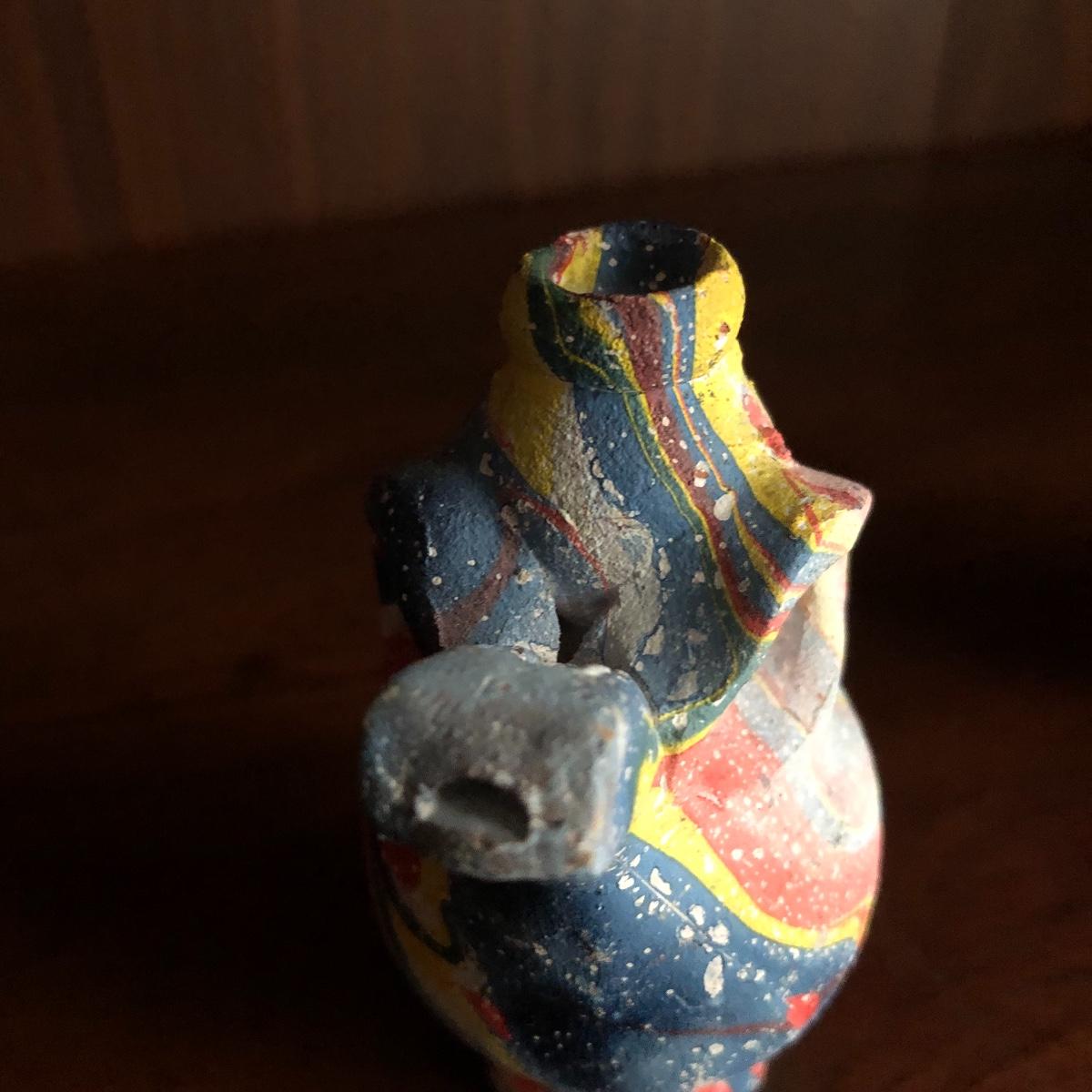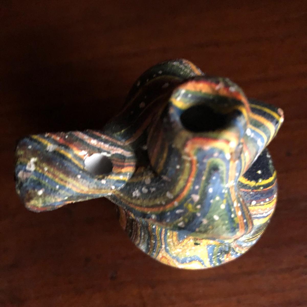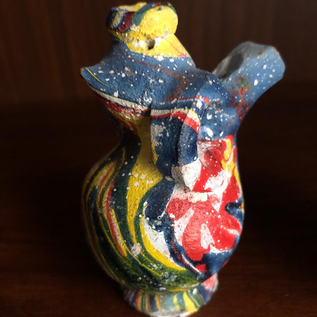 These two bird whistles/flutes are clay and look hand made. They stand over 3” tall. Note the chip on the base of the darker one. Shipping Available.