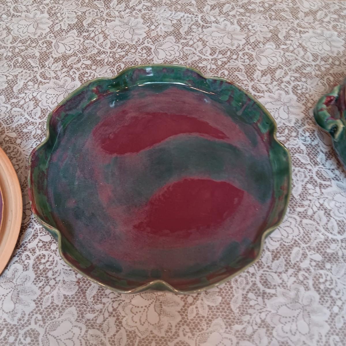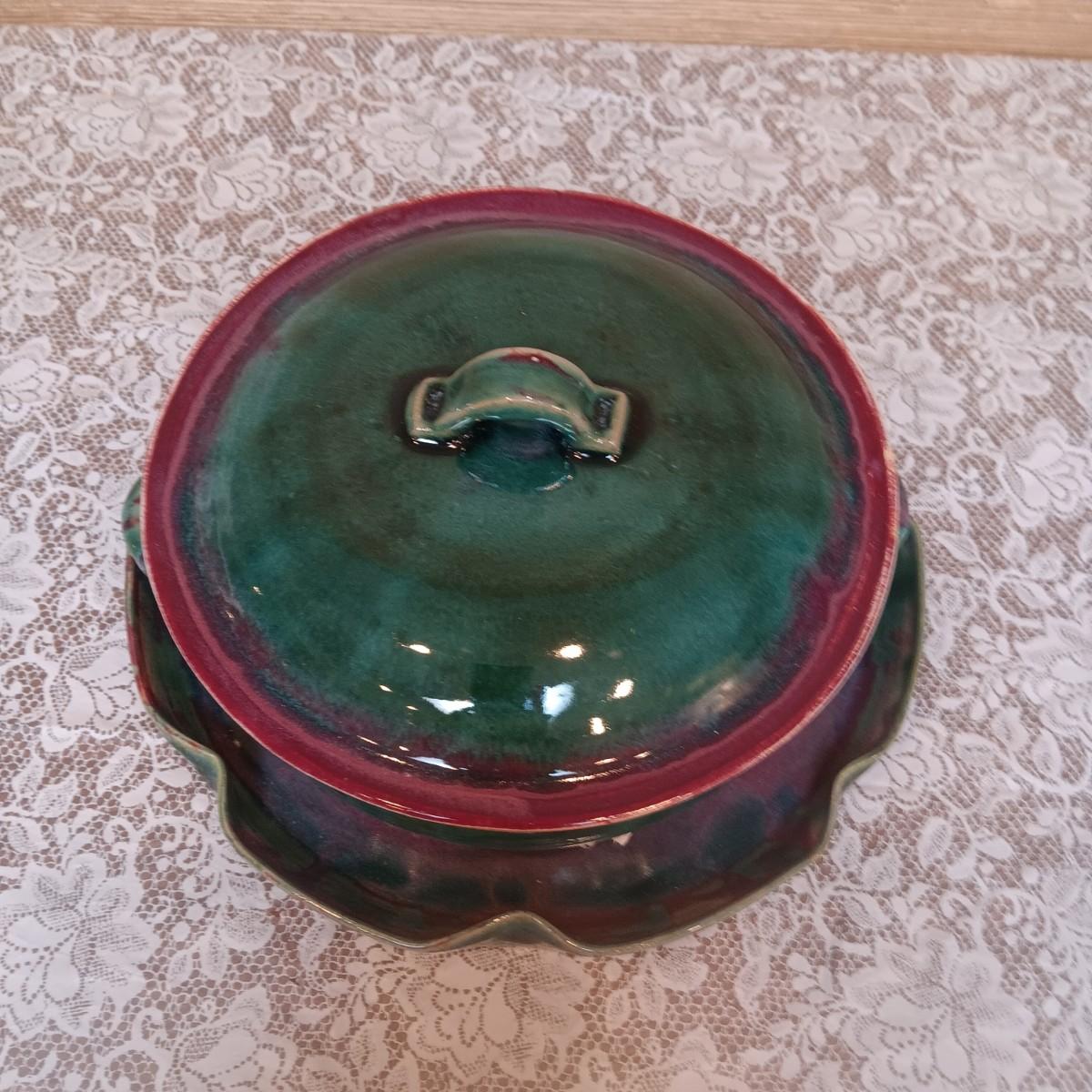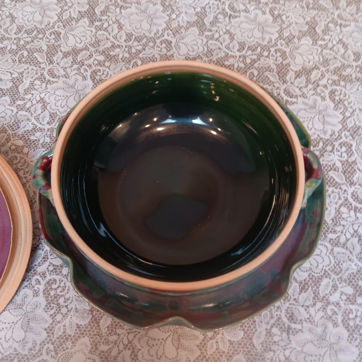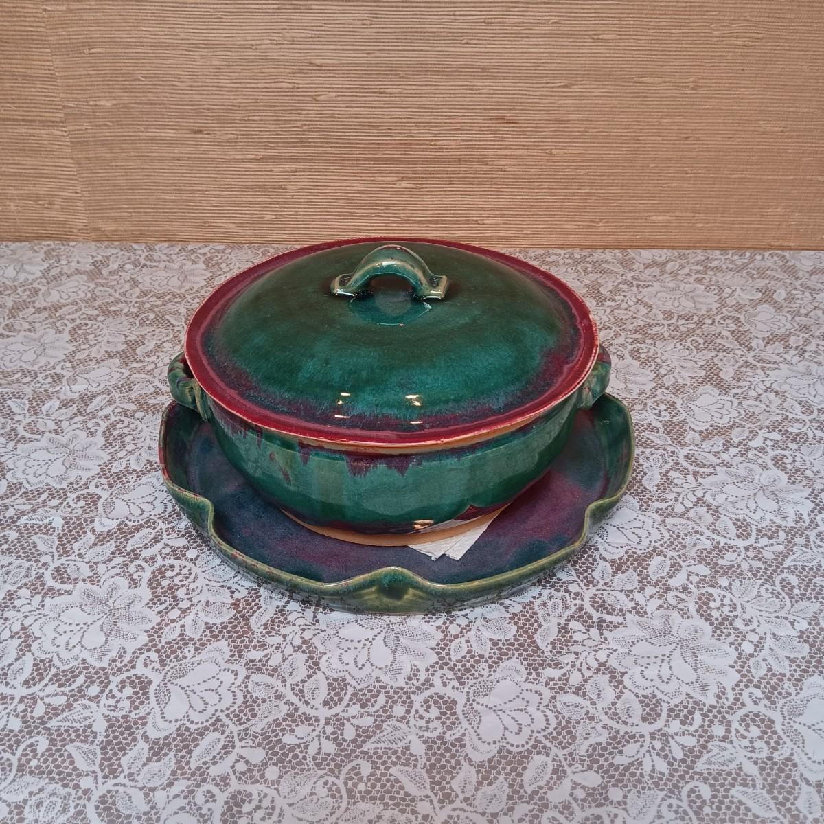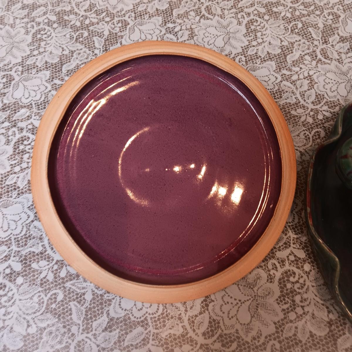 CLAY CASSEROLE DISH WITH LID AND A CLAY PLATTER