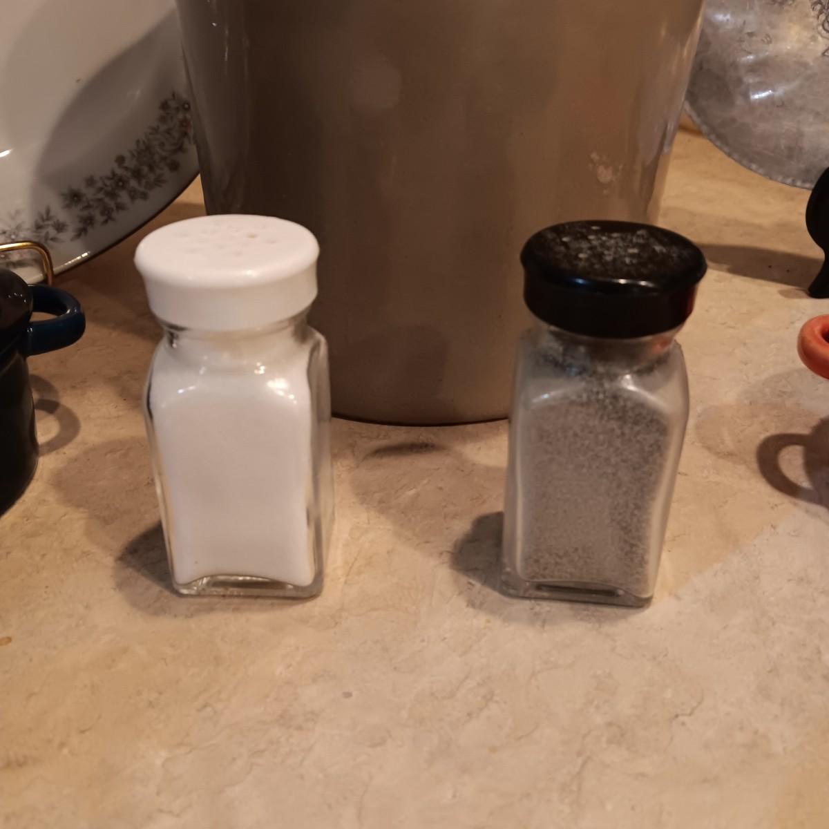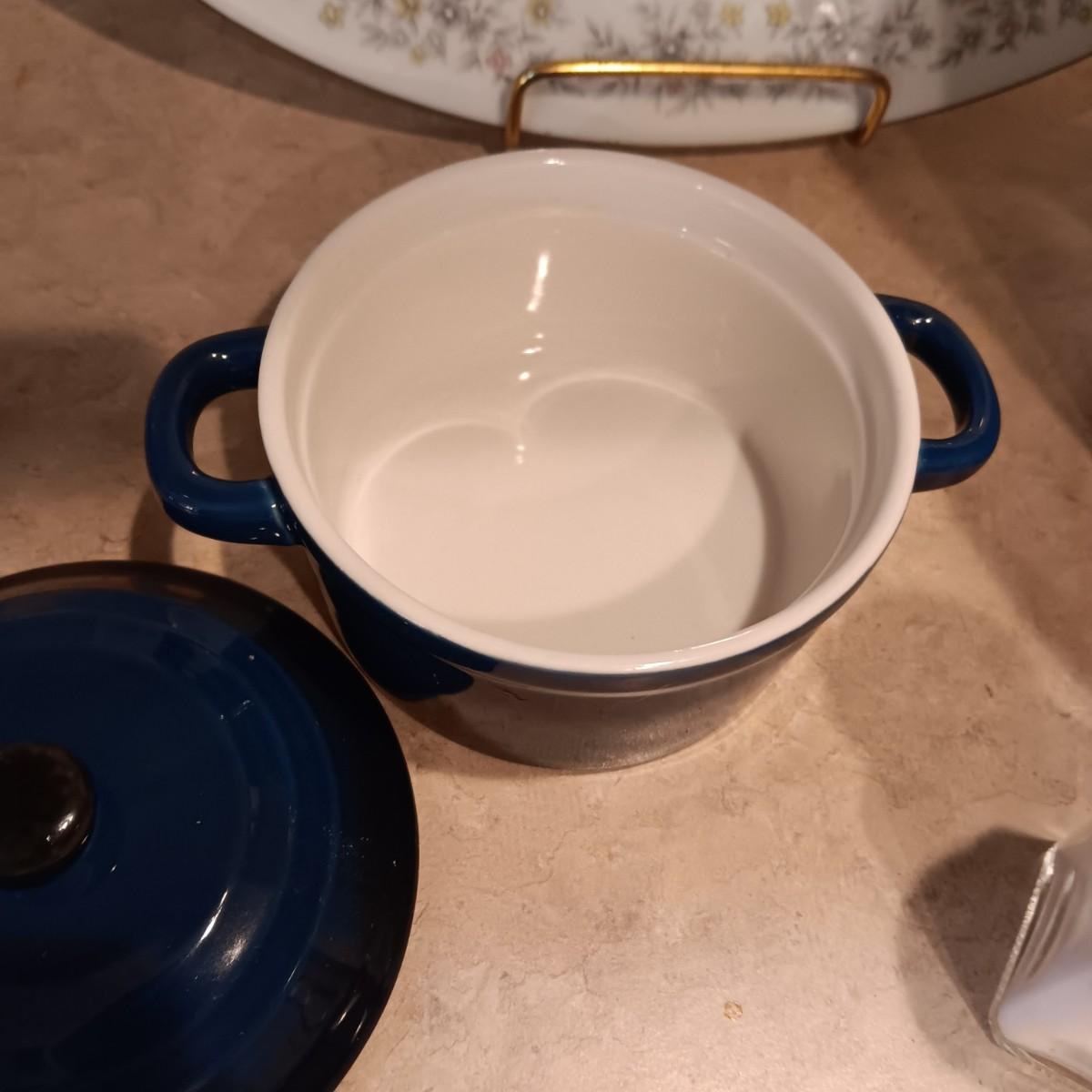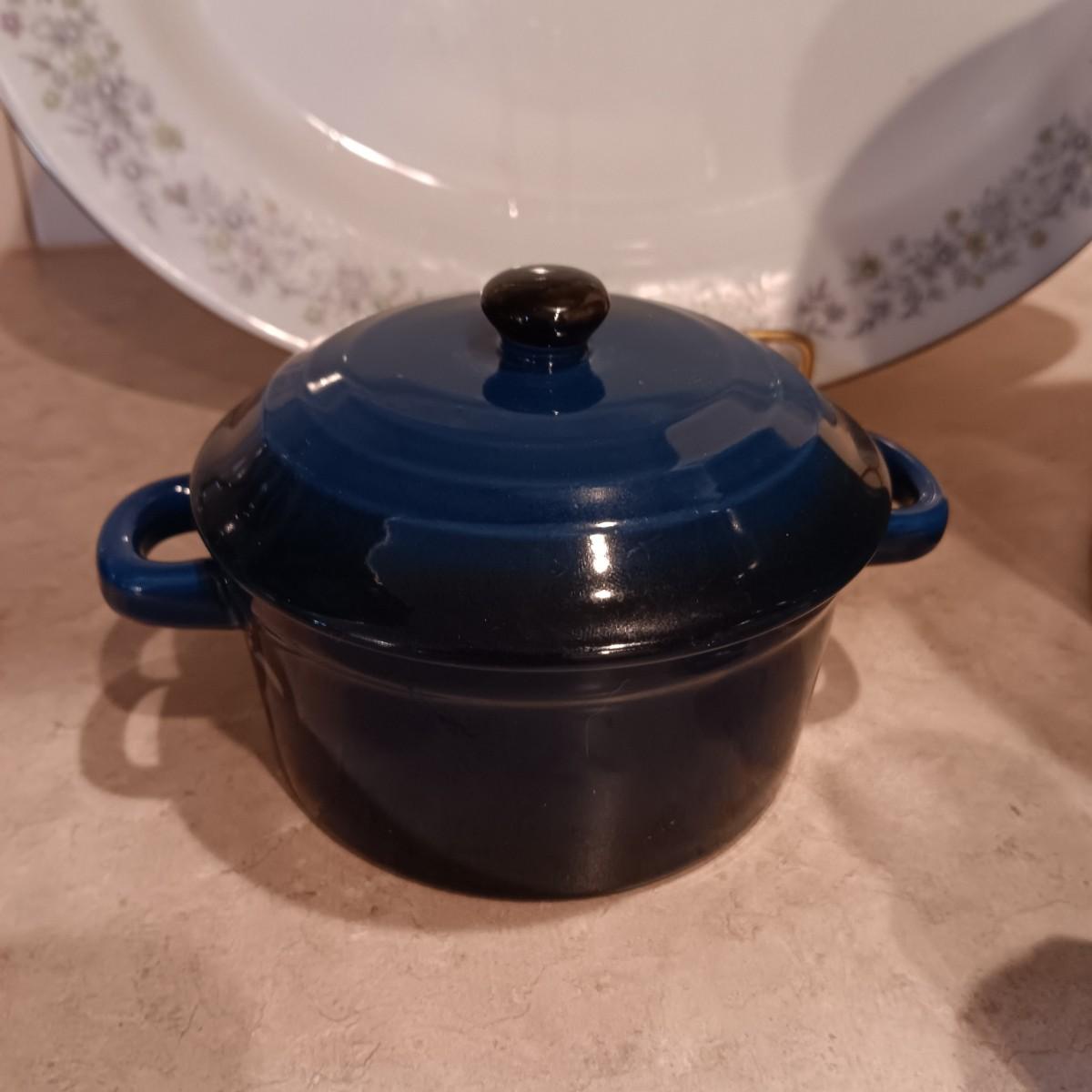 CLAY CROCK, 2 SMALL BAKING DISHES, SHAKERS, PLATTER AND HAMMERED ALUMINUM TRAY