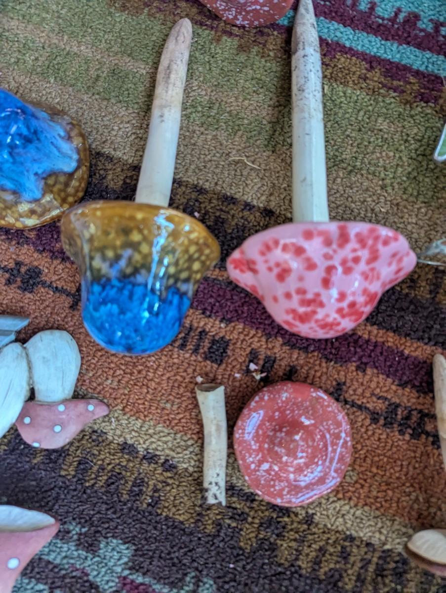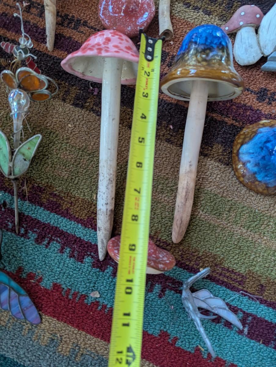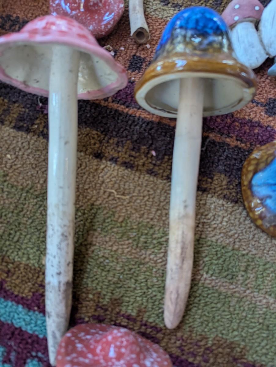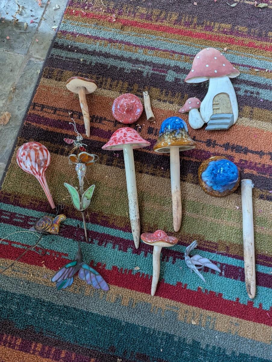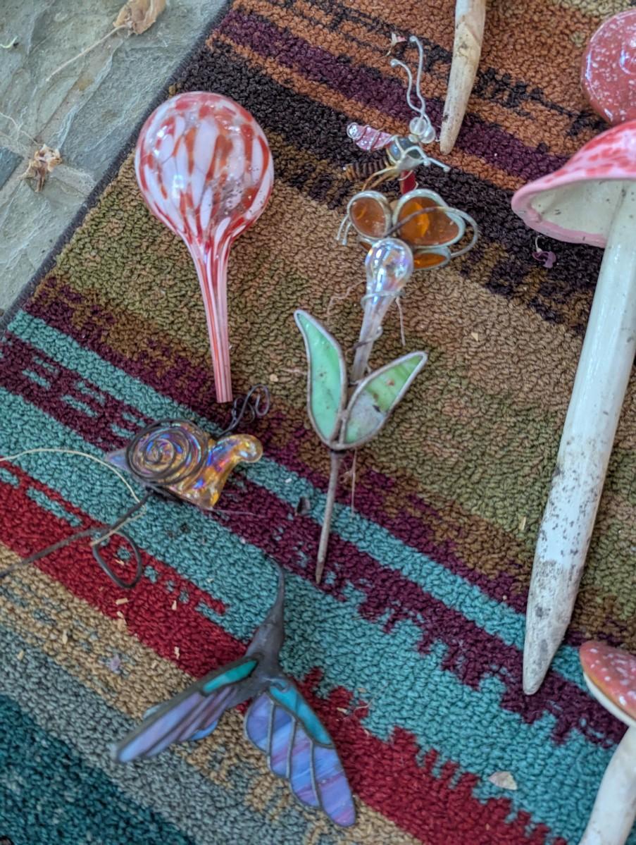 Clay Mushroom Garden Decor & Stained Glass Birds