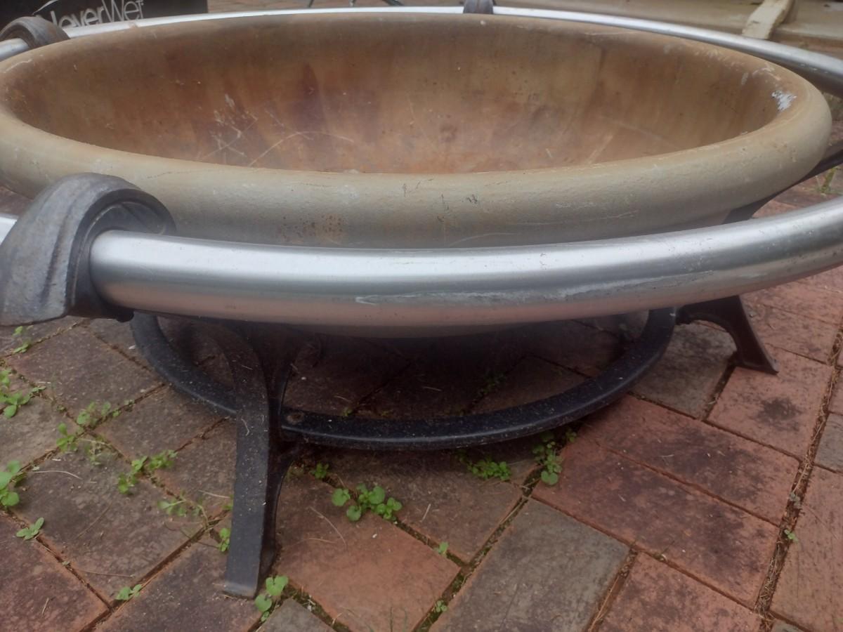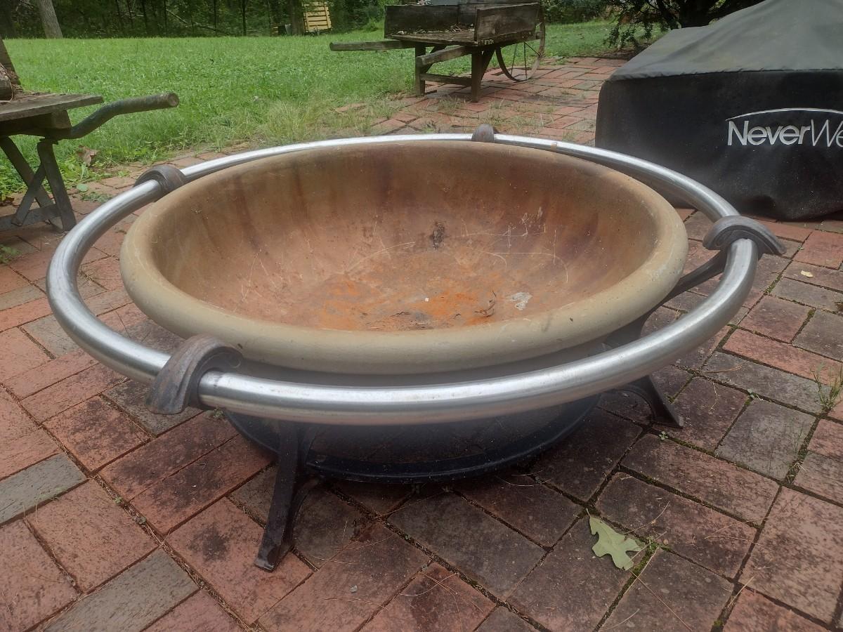 Clay Pan Outdoor Firepit with Stainless Steel Stand