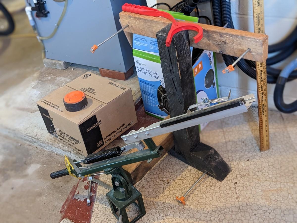 Clay Pigeon Thrower and New Box of Clay Pigeons