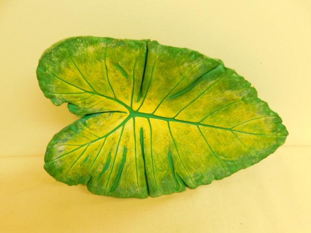 Clay Pottery Art Elephant Ear Leaf by North Carolina Artist 12"x10"