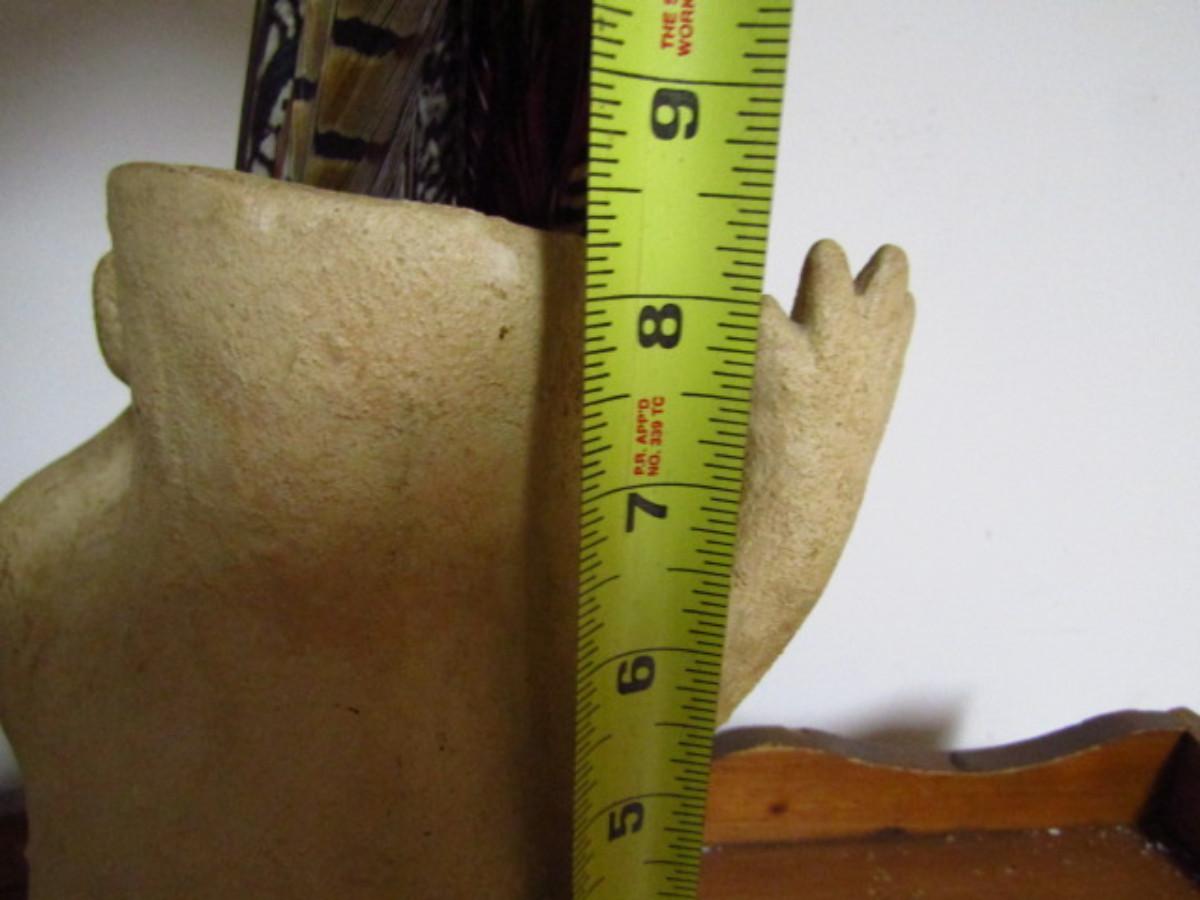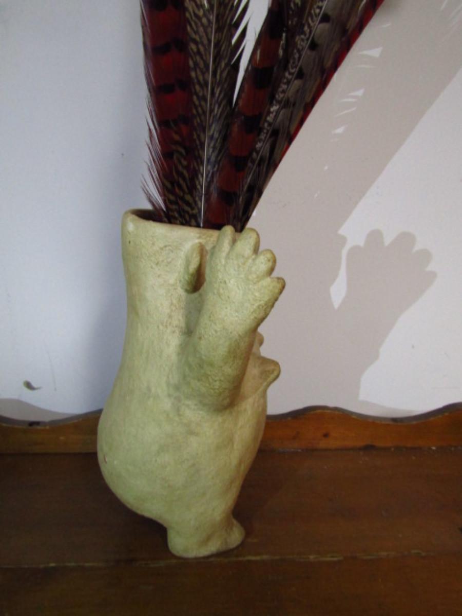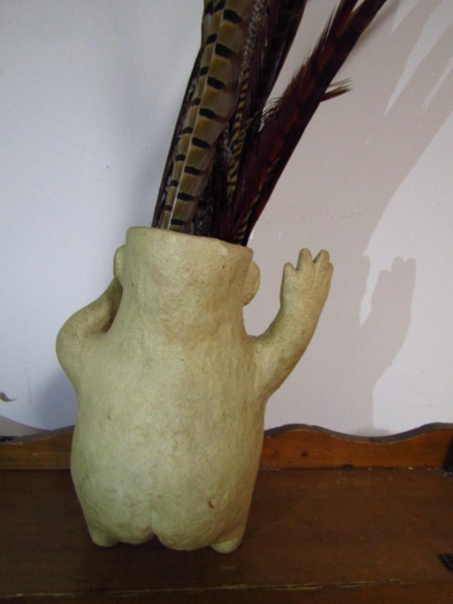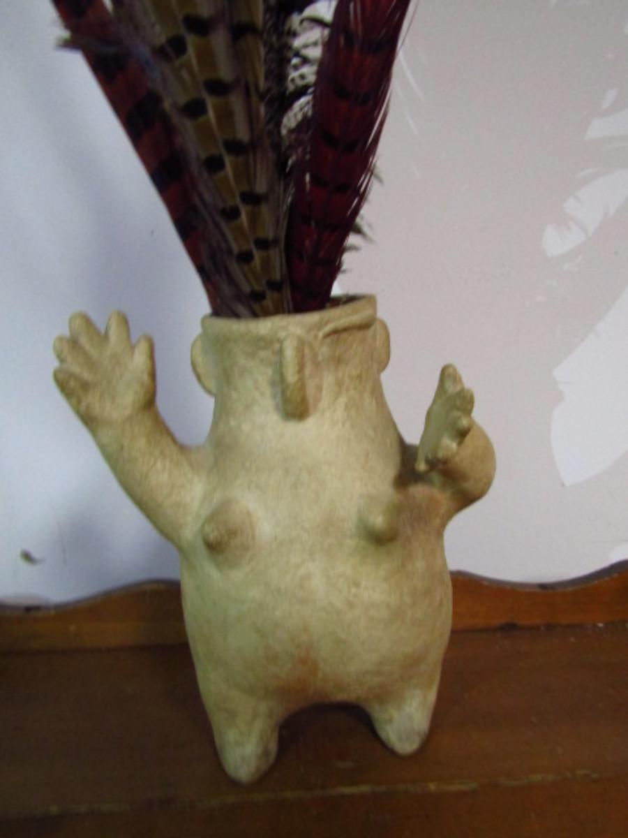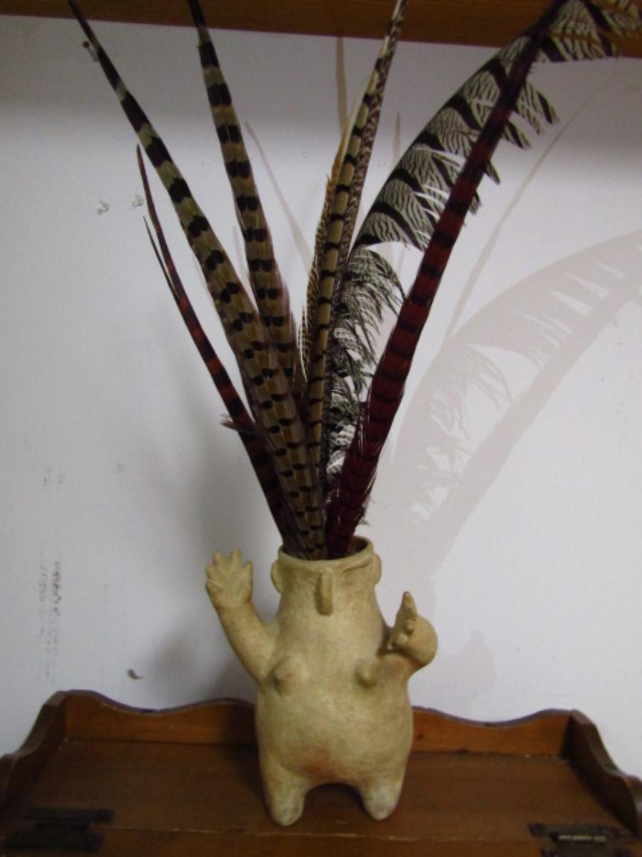 Clay 'Rounded Person' Vase with Pheasant Feather Assortment