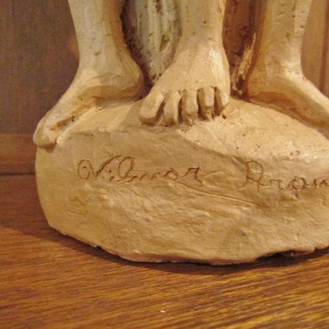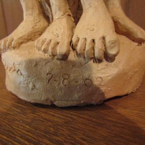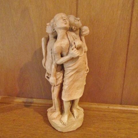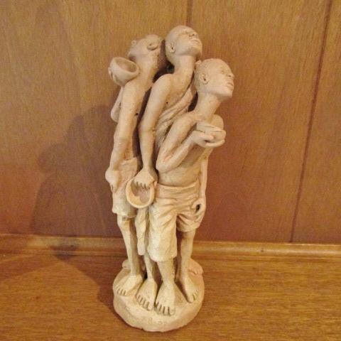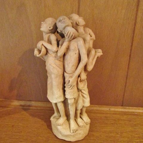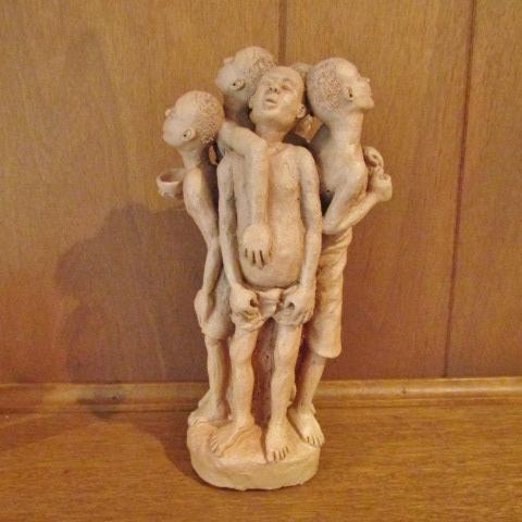 SIGNED CLAY SCULPTURE OF YOUNG BOYS APPROX 12" TALL