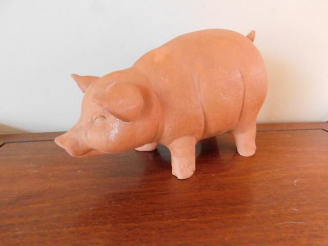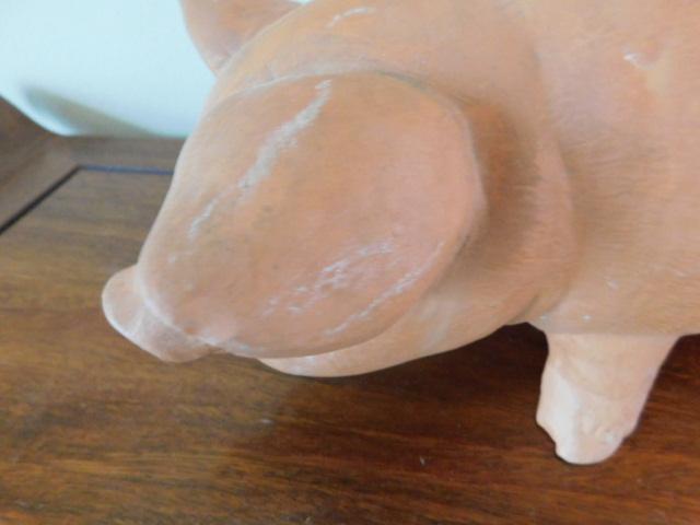 Clay Terra Cotta Color Table Top Pig 13"x8" has tiny chip on left ear as shown