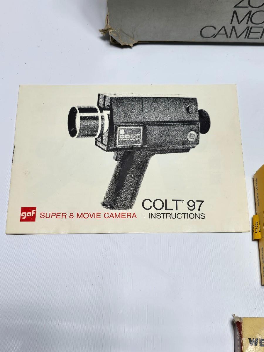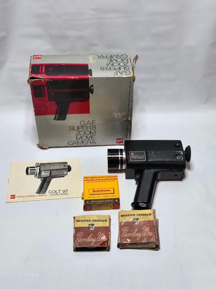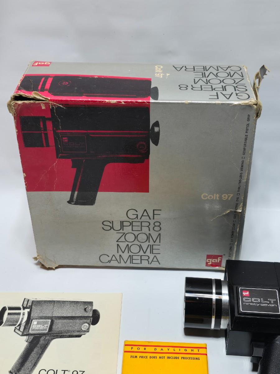 Clean - Vintage GAF Colt 97 Super 8 Zoom Movie Camera with accessories in original box