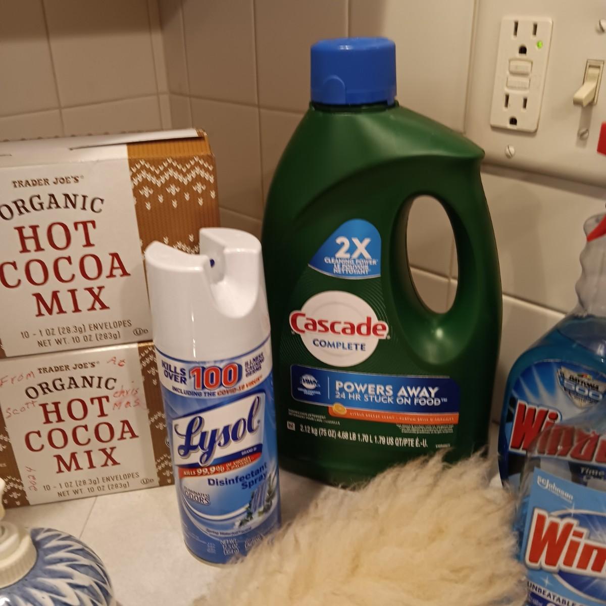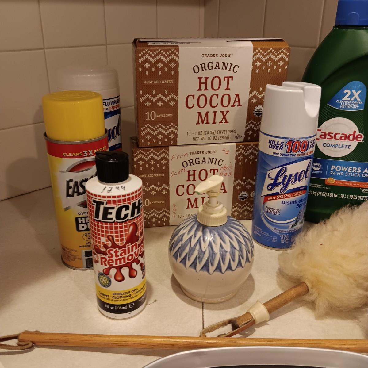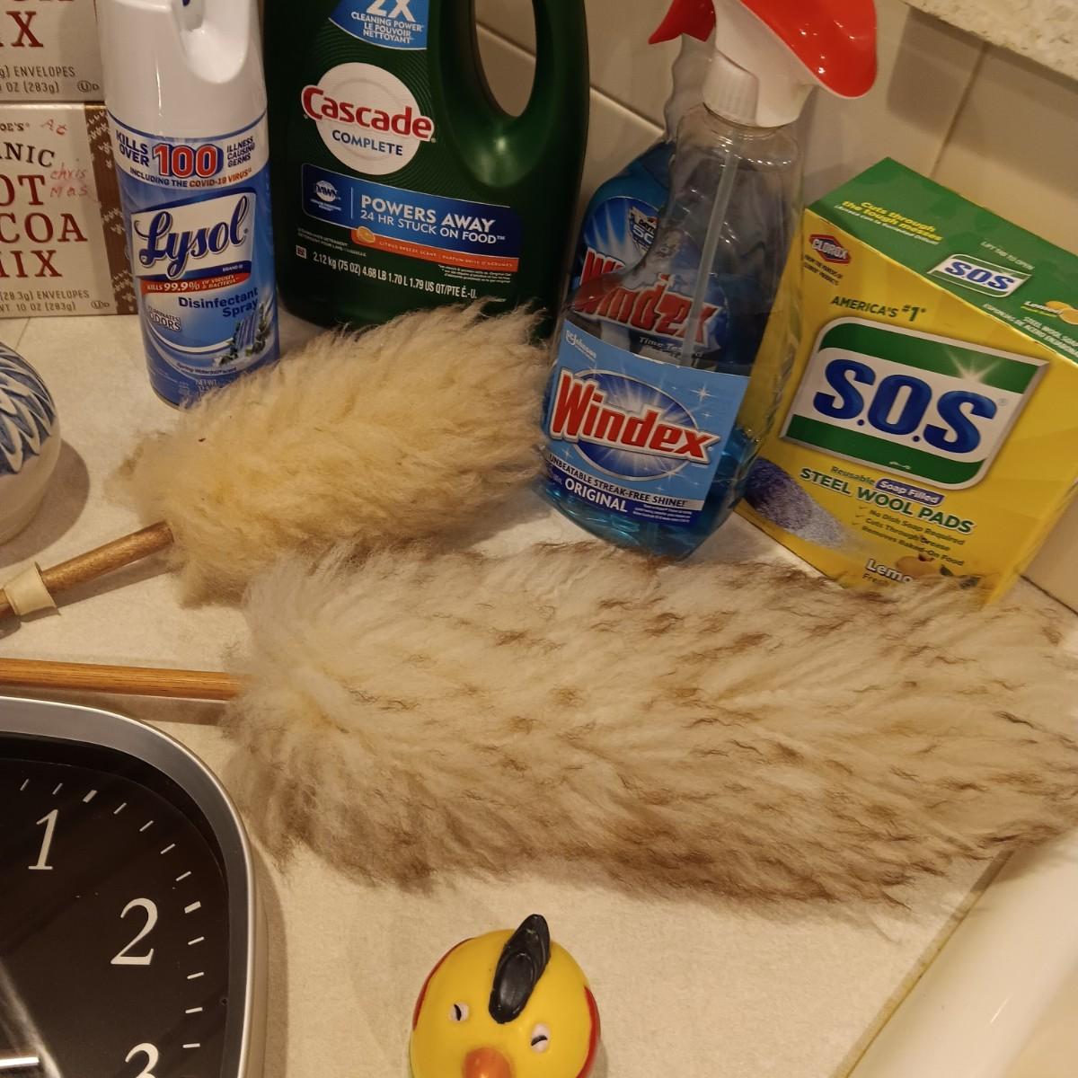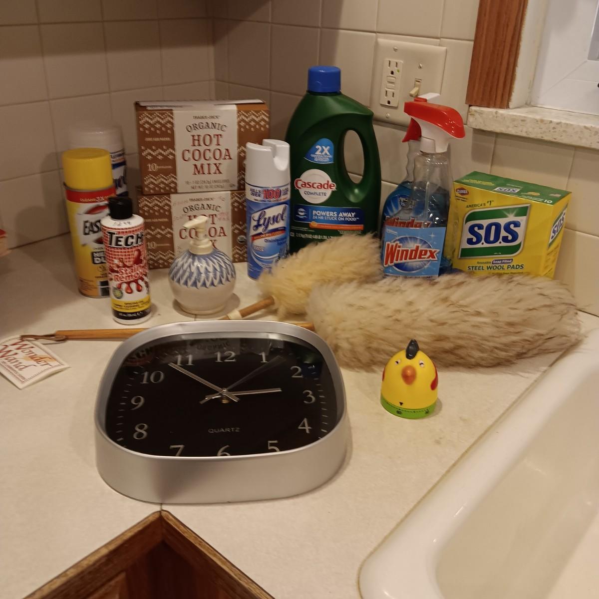 CLEANERS, DUSTERS, WALL CLOCK AND MORE