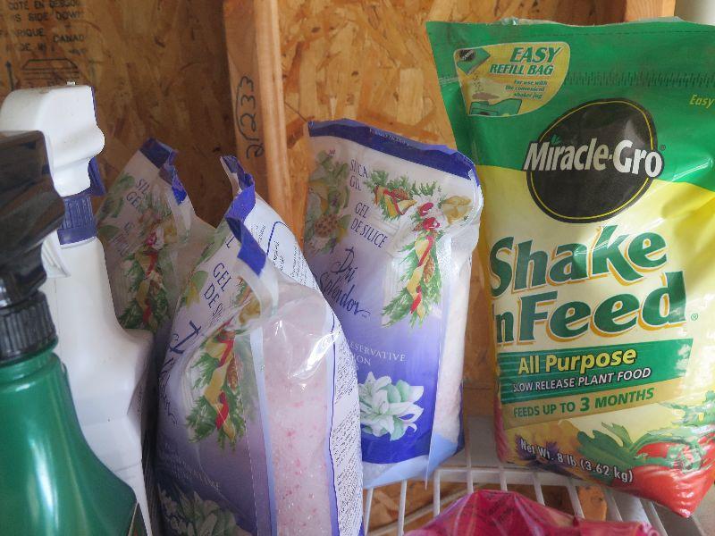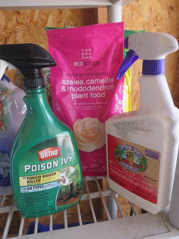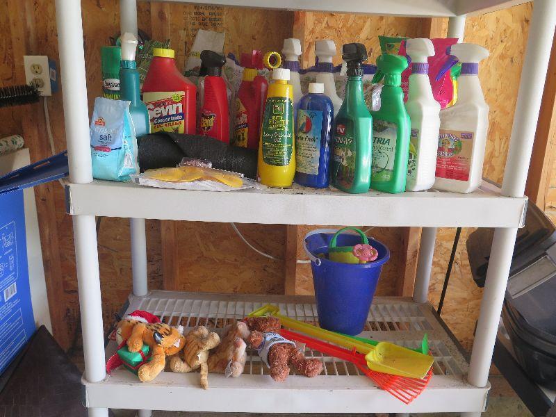 Plant food, weed kill, bug kill, plastic pots, garden edging, beach toys and more. Bring box to move.