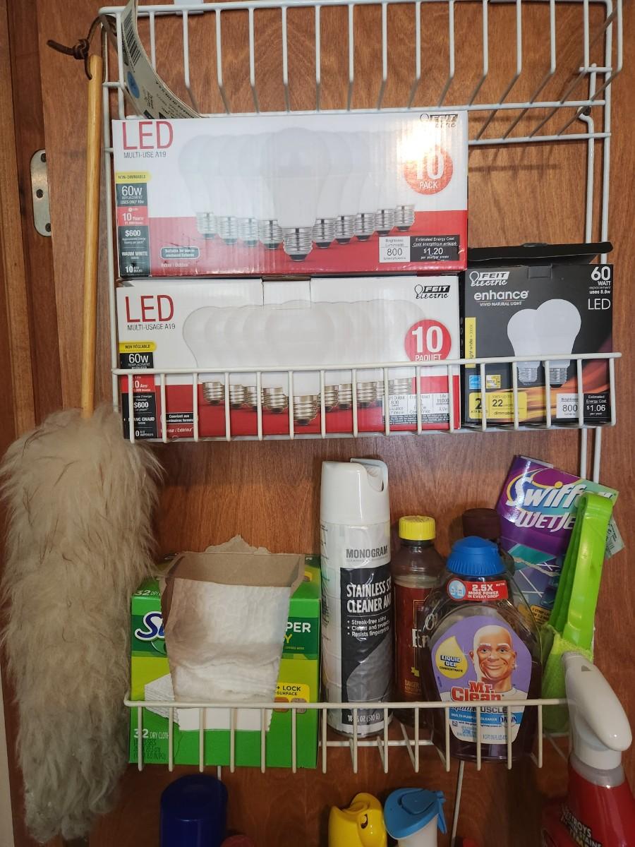 Cleaning supplies and light bulbs