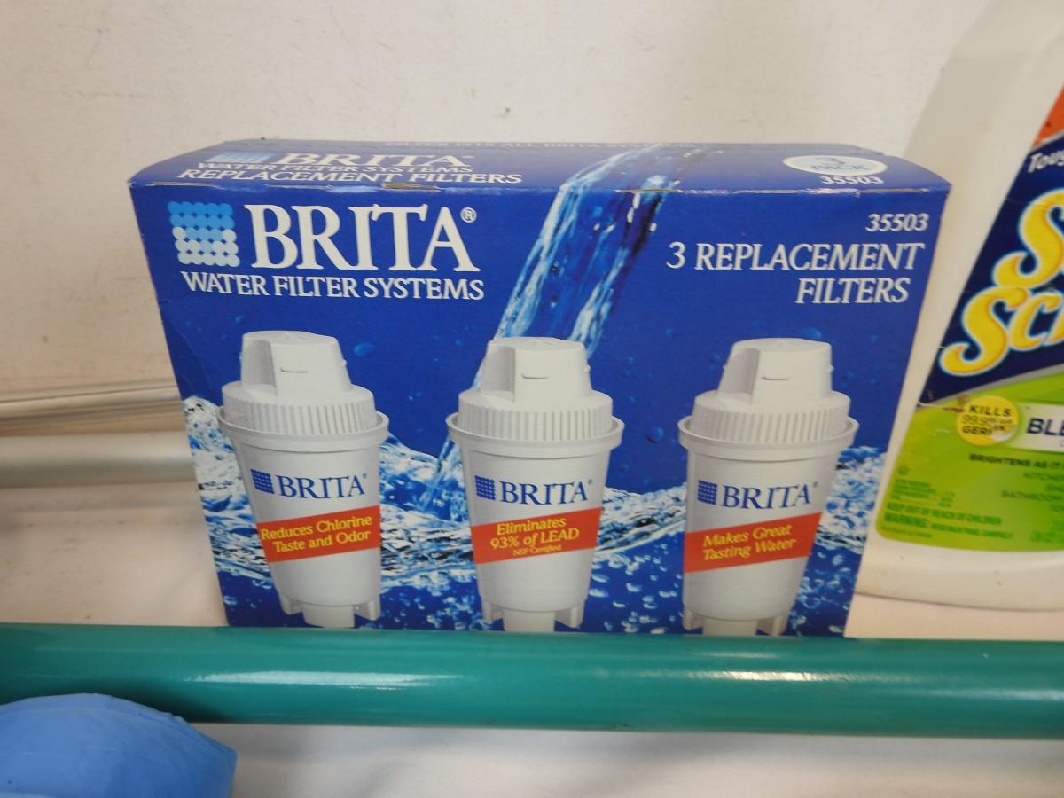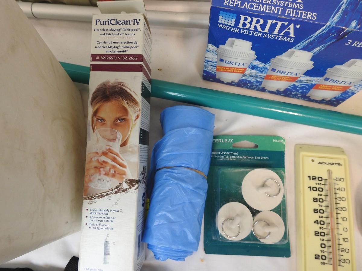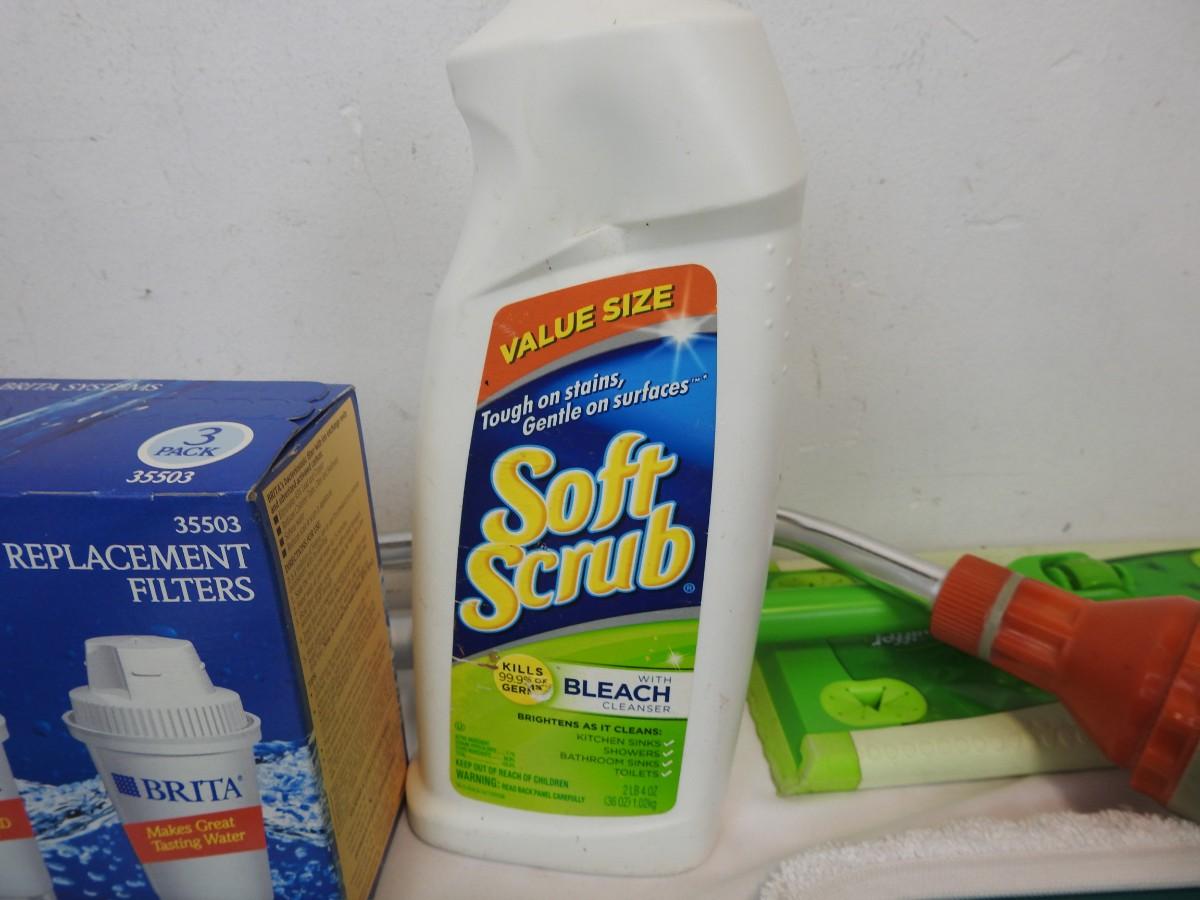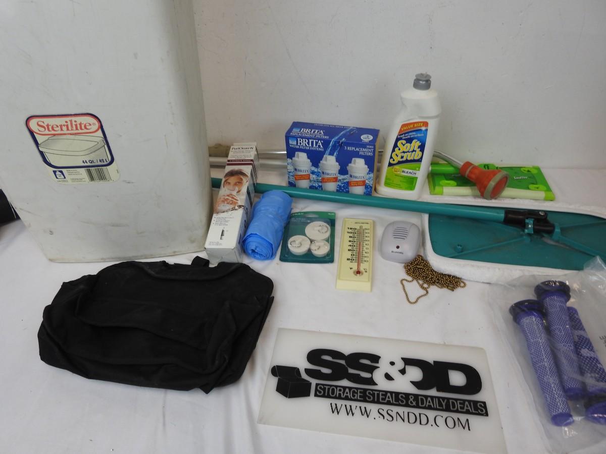Cleaning Supplies, Dyson Vacuum Filter, Sterilite 42 L Trash Can, Sh-Mop, Swiffer, Bath Stopper Assortment, PuriClean IV Filter, Brita Replacement Filters