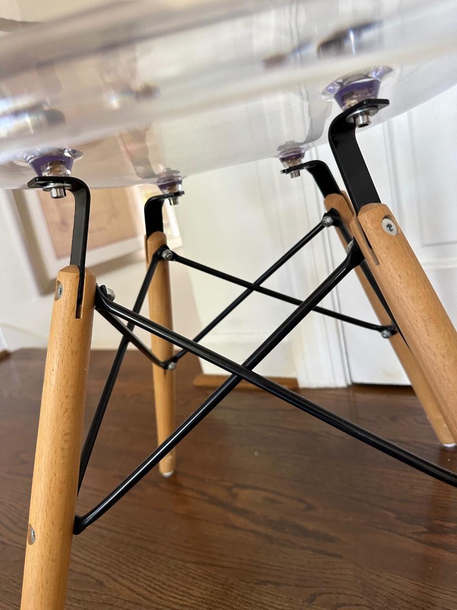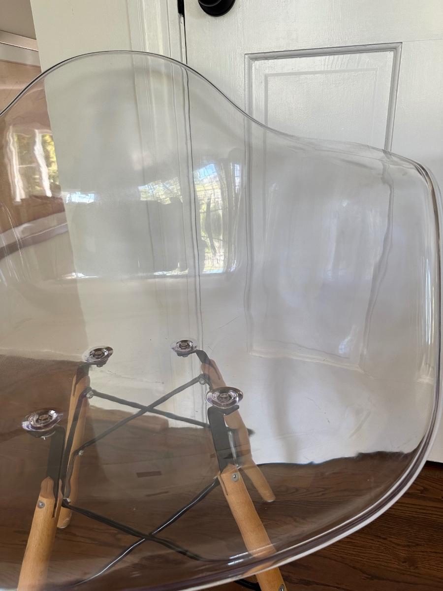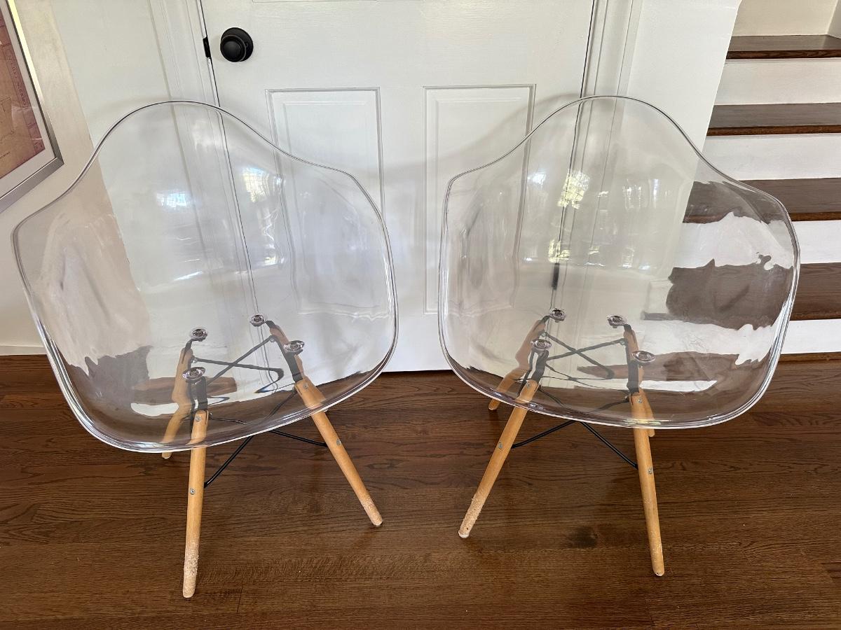 PR OF CLEAR ACRYLIC CHAIRS, SEE LEGS FOR SCRATCHES