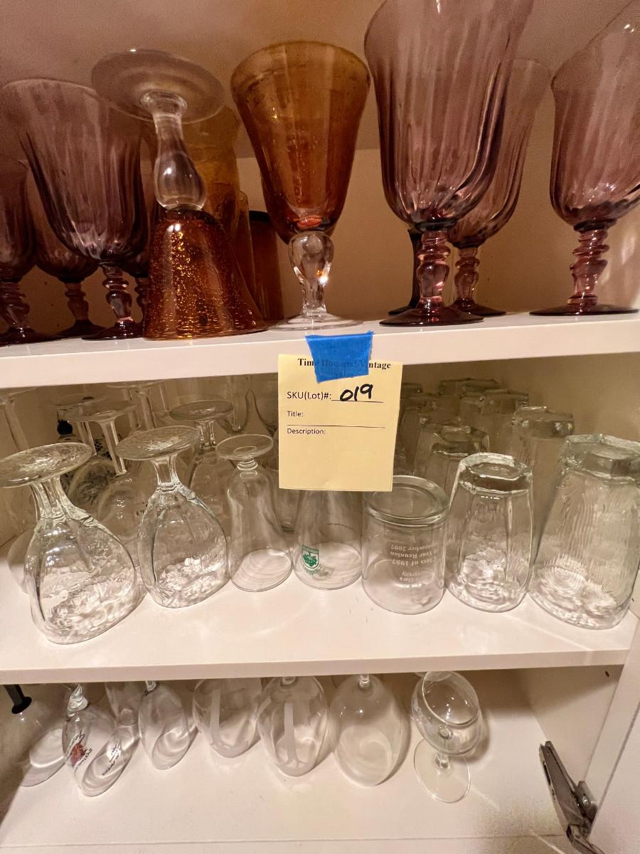LOTS of glassware, bing lots of boxes and wrapping supplies. Many shapes, brands, sizes and colors.