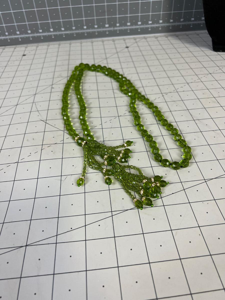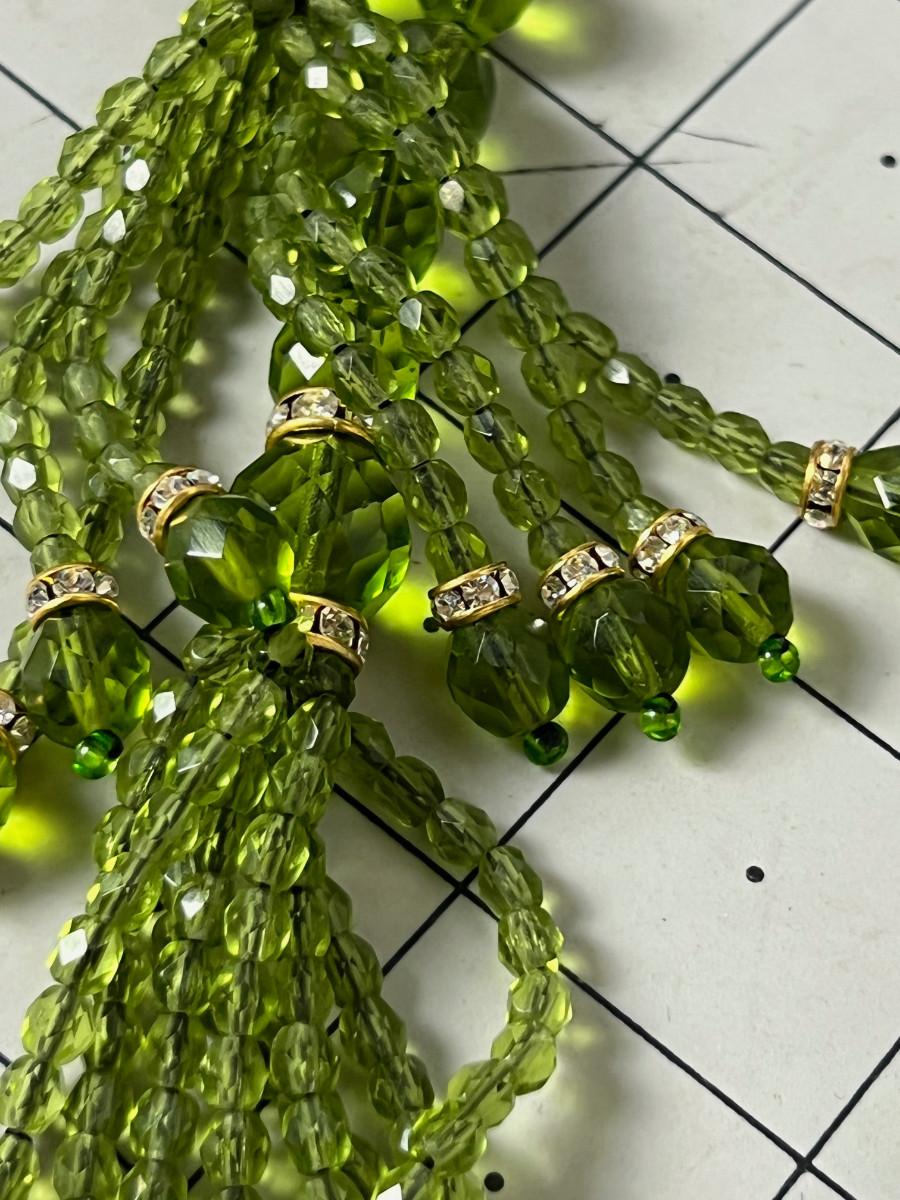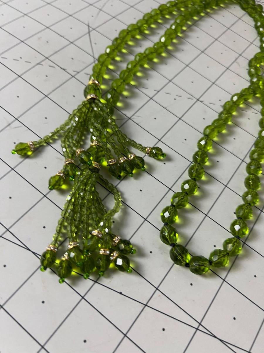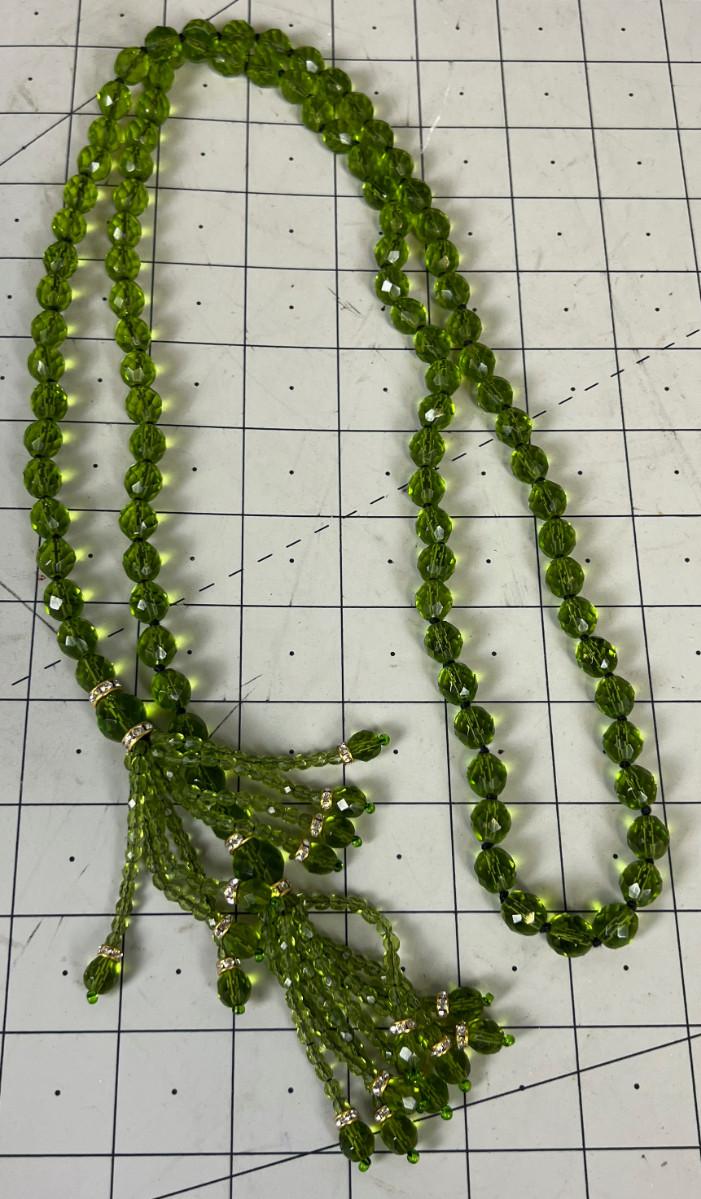 Clear Avocado Green Faceted Glass Beaded / Tassel Ended for Length Control