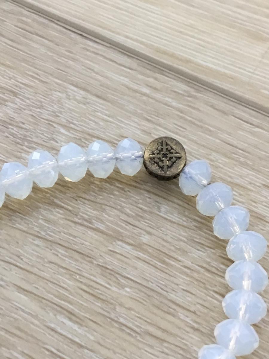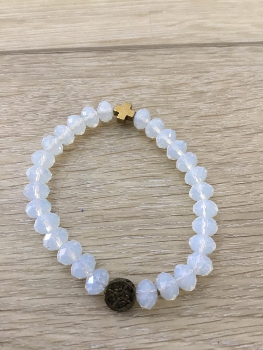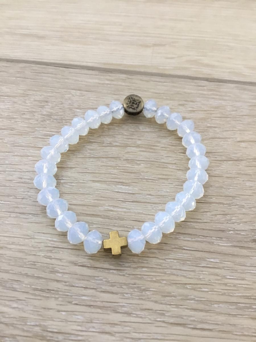 Clear beaded cross charm stretchy bracelet