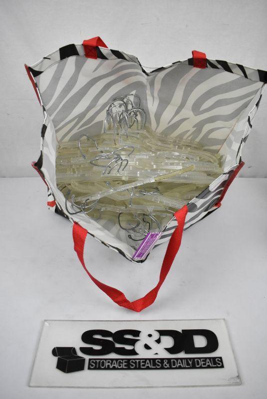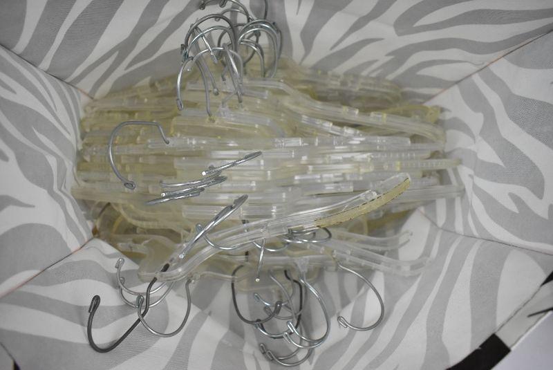 Clear Clothing Hangers with Swivel Hooks, approx 45, with zebra bag
