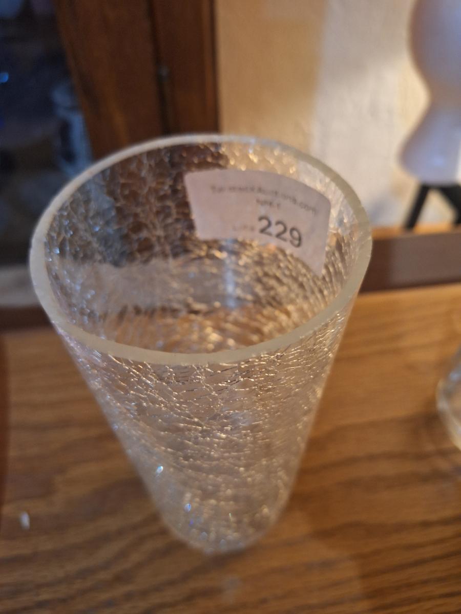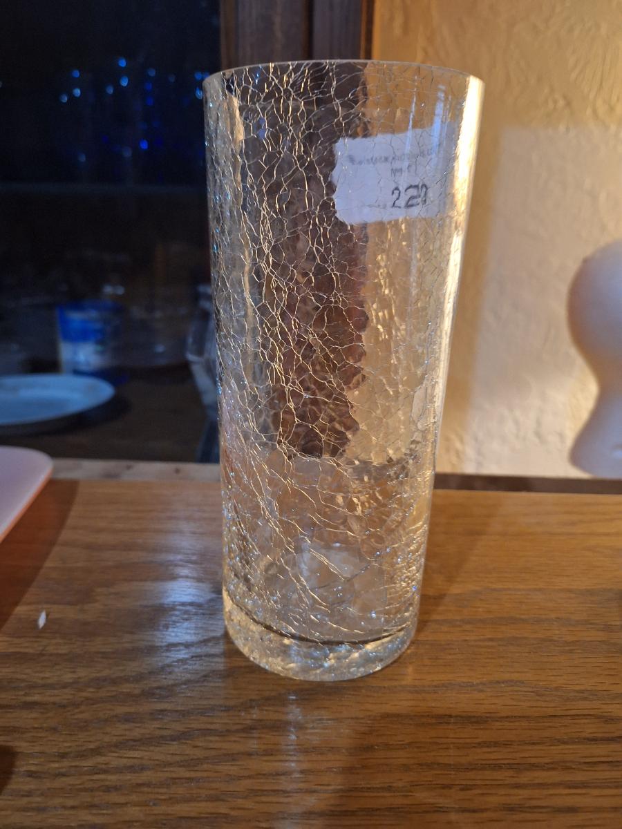 clear crackle glass cylinder vase.