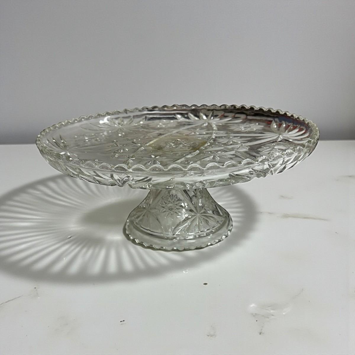 Clear Glass Cake Stand, no chips, approx. 13" in diameter; great for holiday parties!