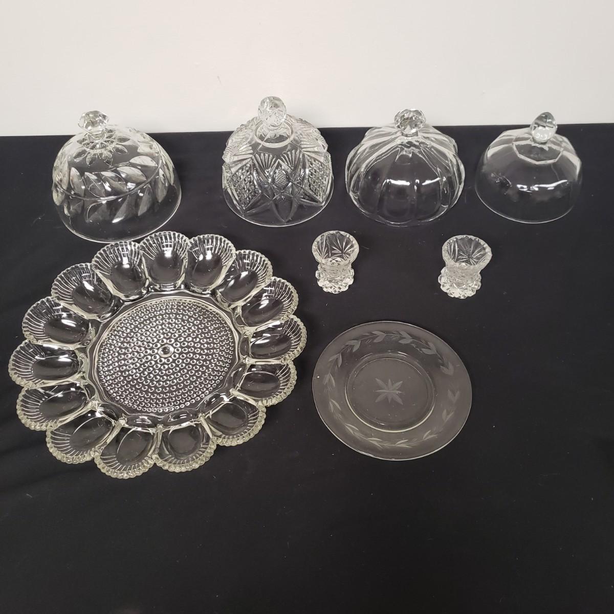 Glass Deviled Egg Dish, Toothpick Holders, and Cheese Domes (N D-KD)