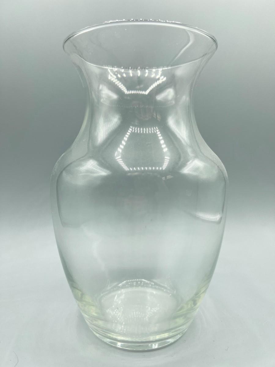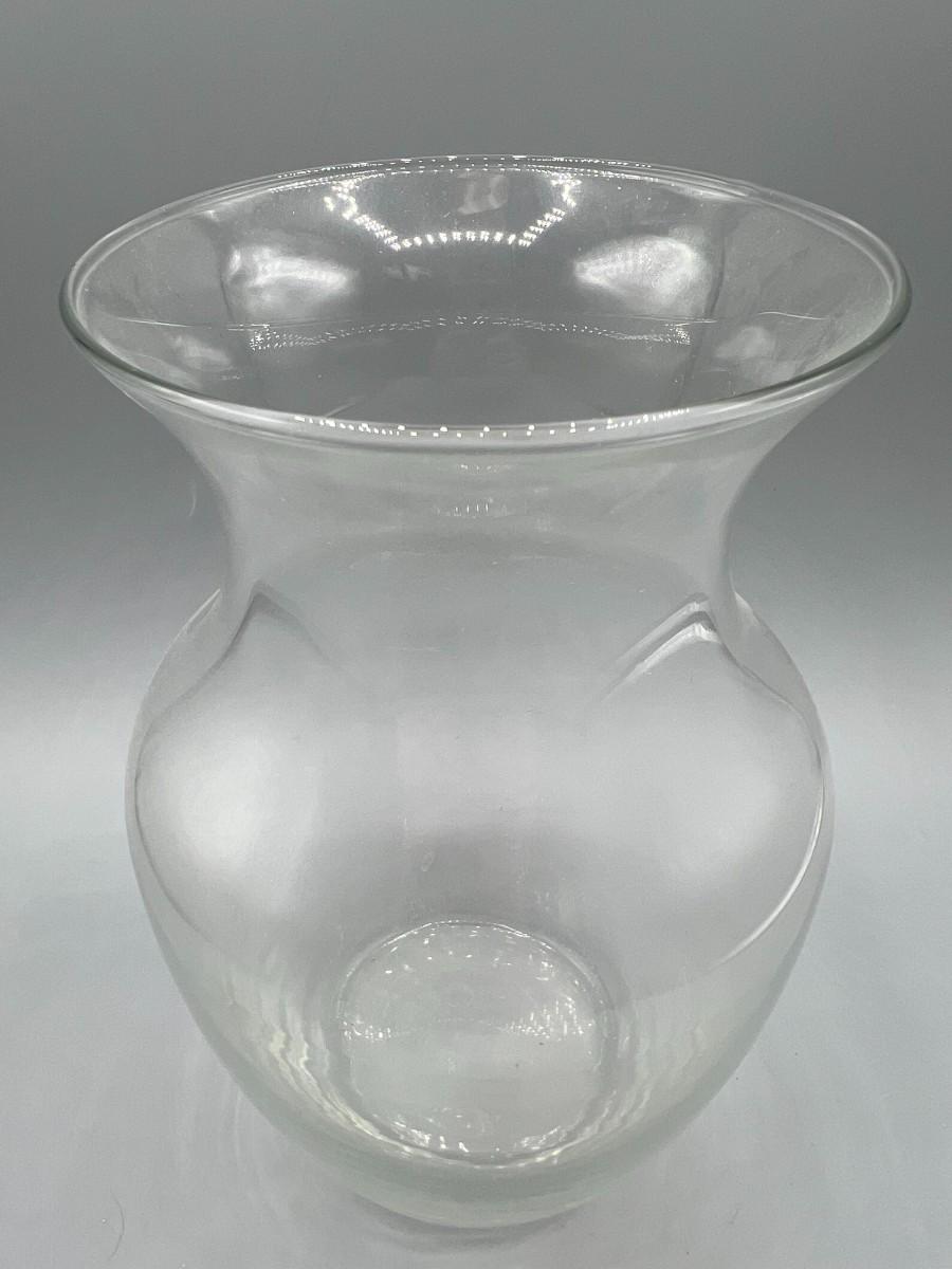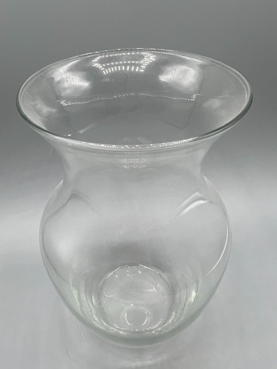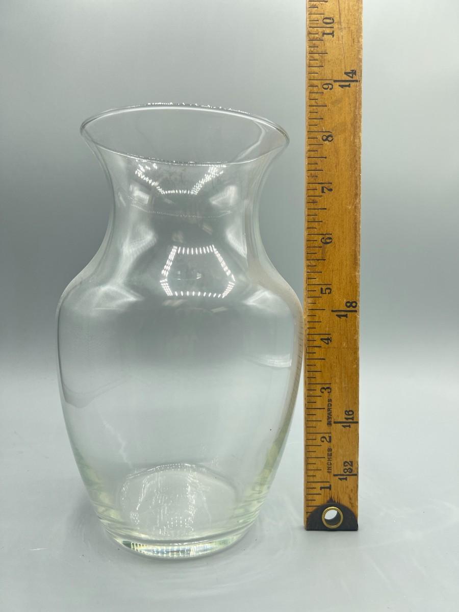 Clear Glass Flower Vase with Flat Bottom, there are no significant cracks or chips to the vase and is in good useable condition. Check pictures for more details and for sizing.