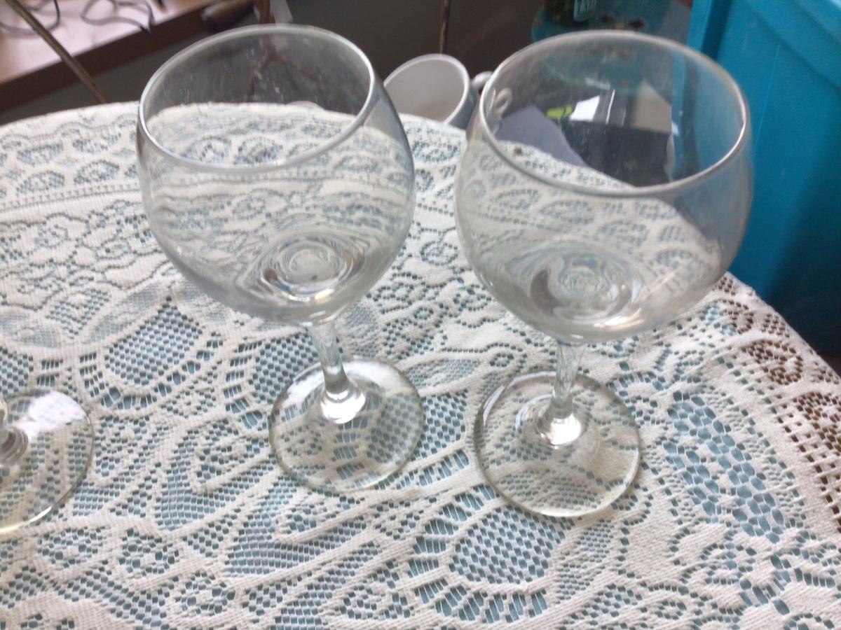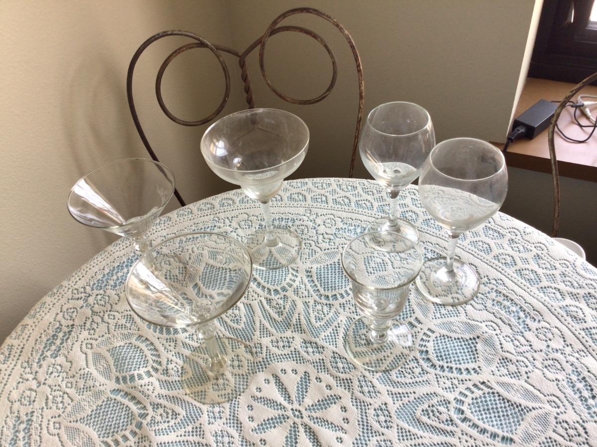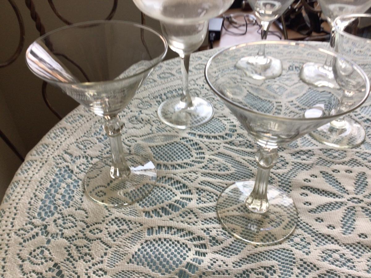 You get six glasses, two martini glasses, two wine glasses, a margarita and another wine glass.