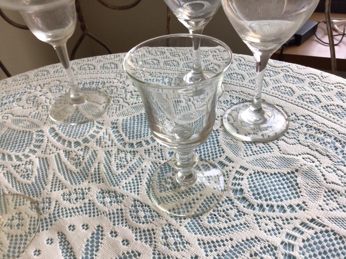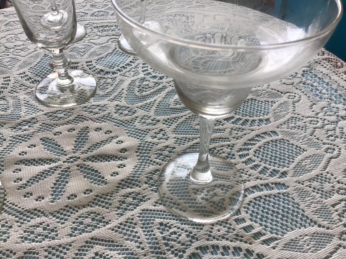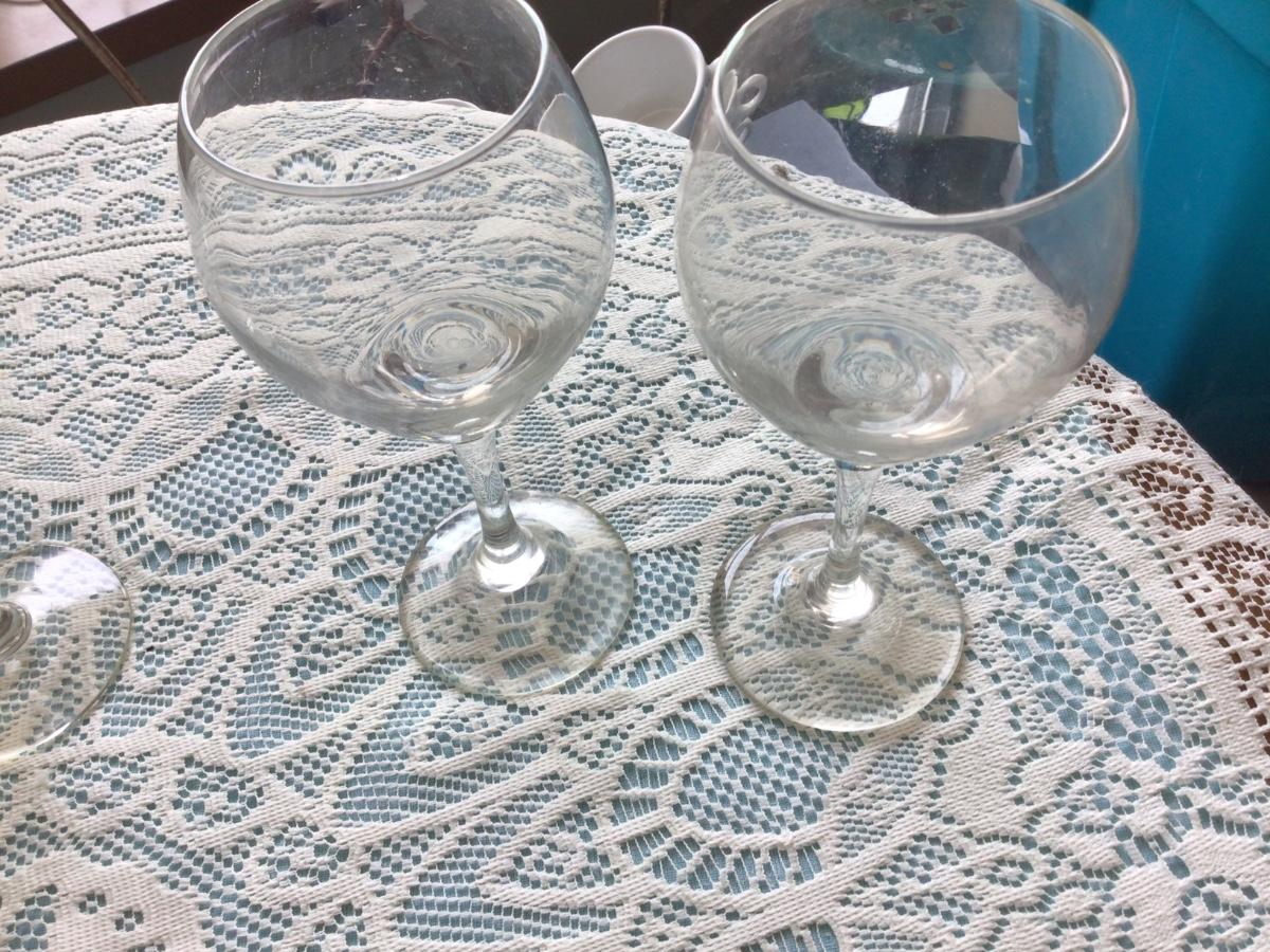 You get six glasses, two martini glasses, two wine glasses, a margarita and another wine glass.