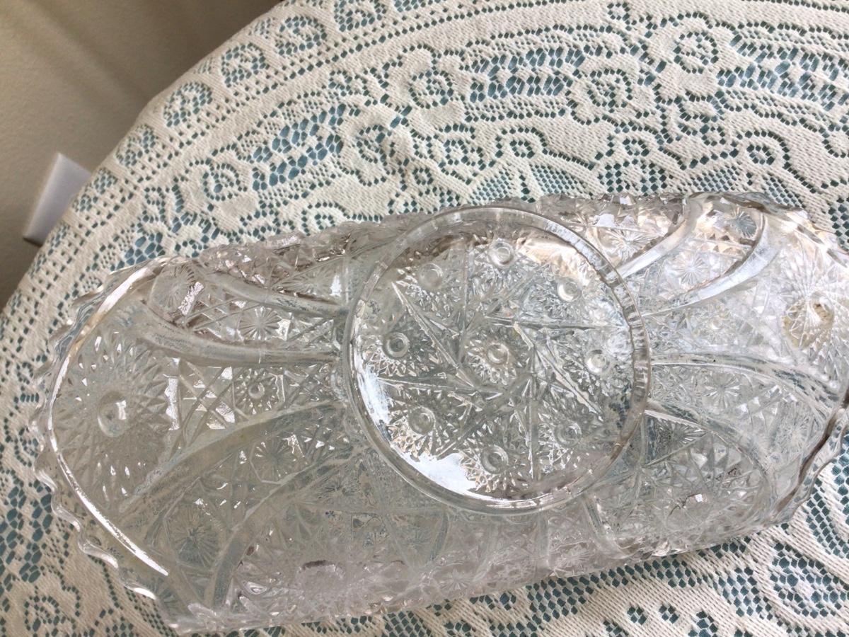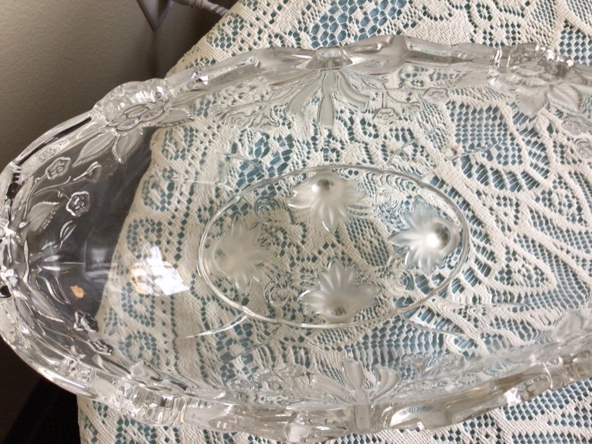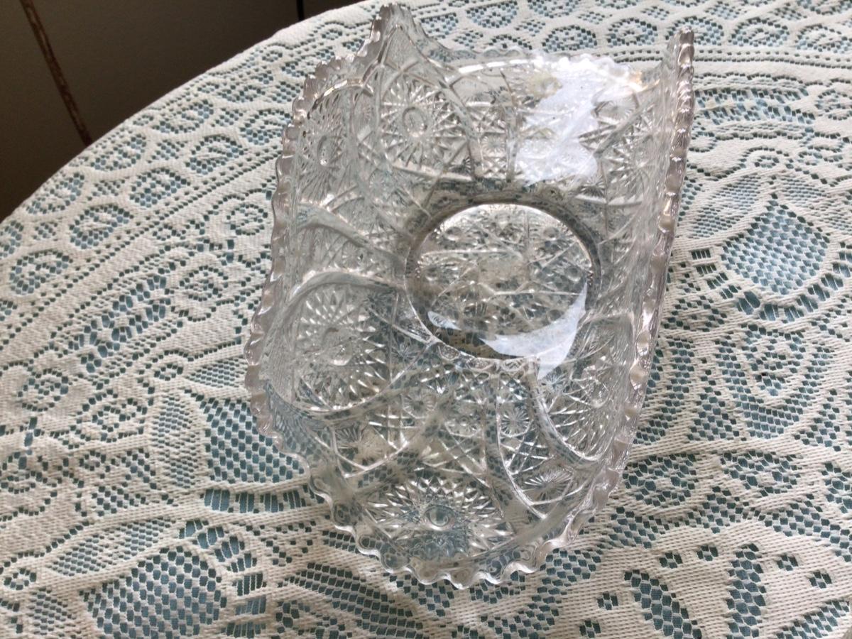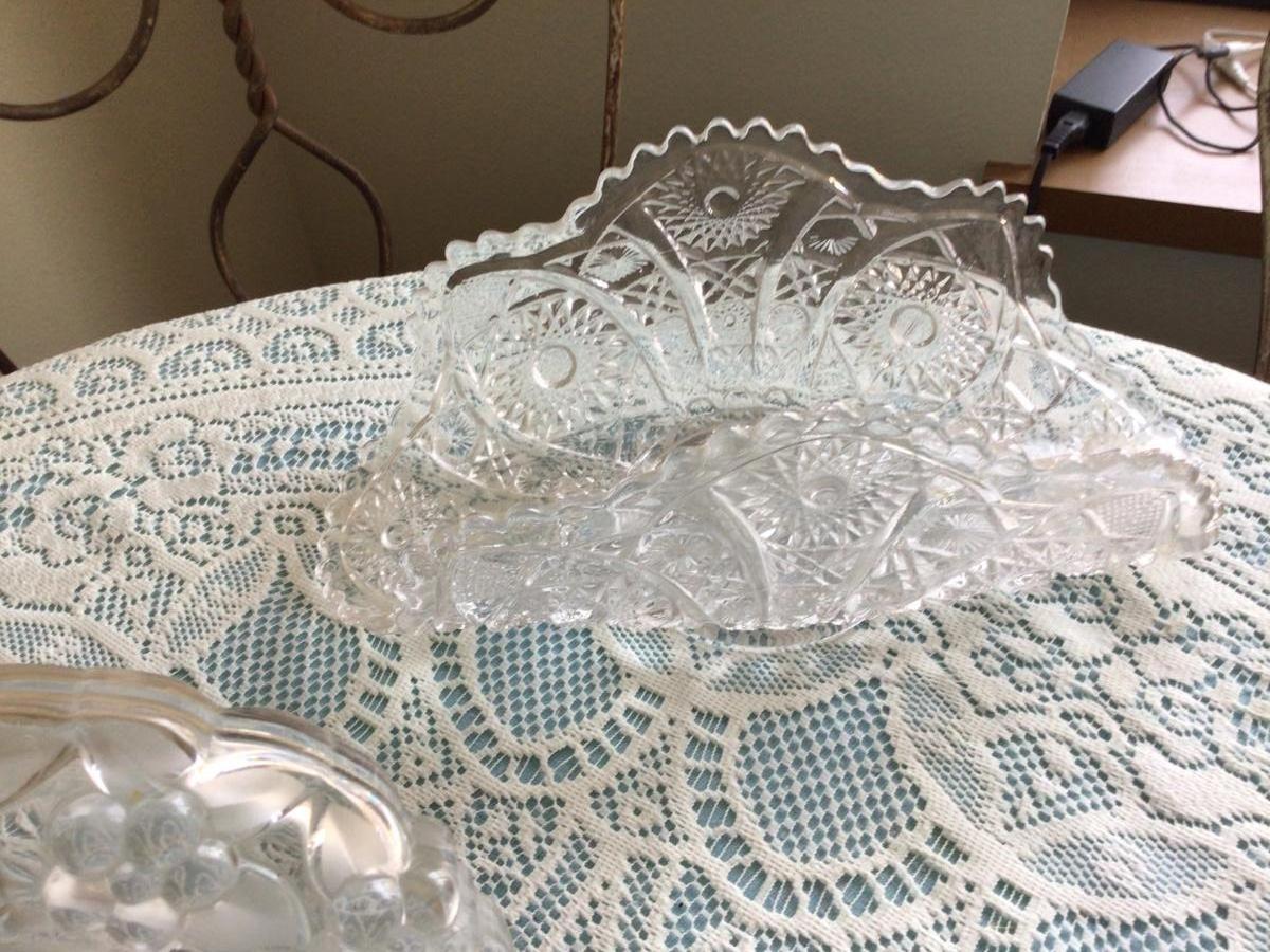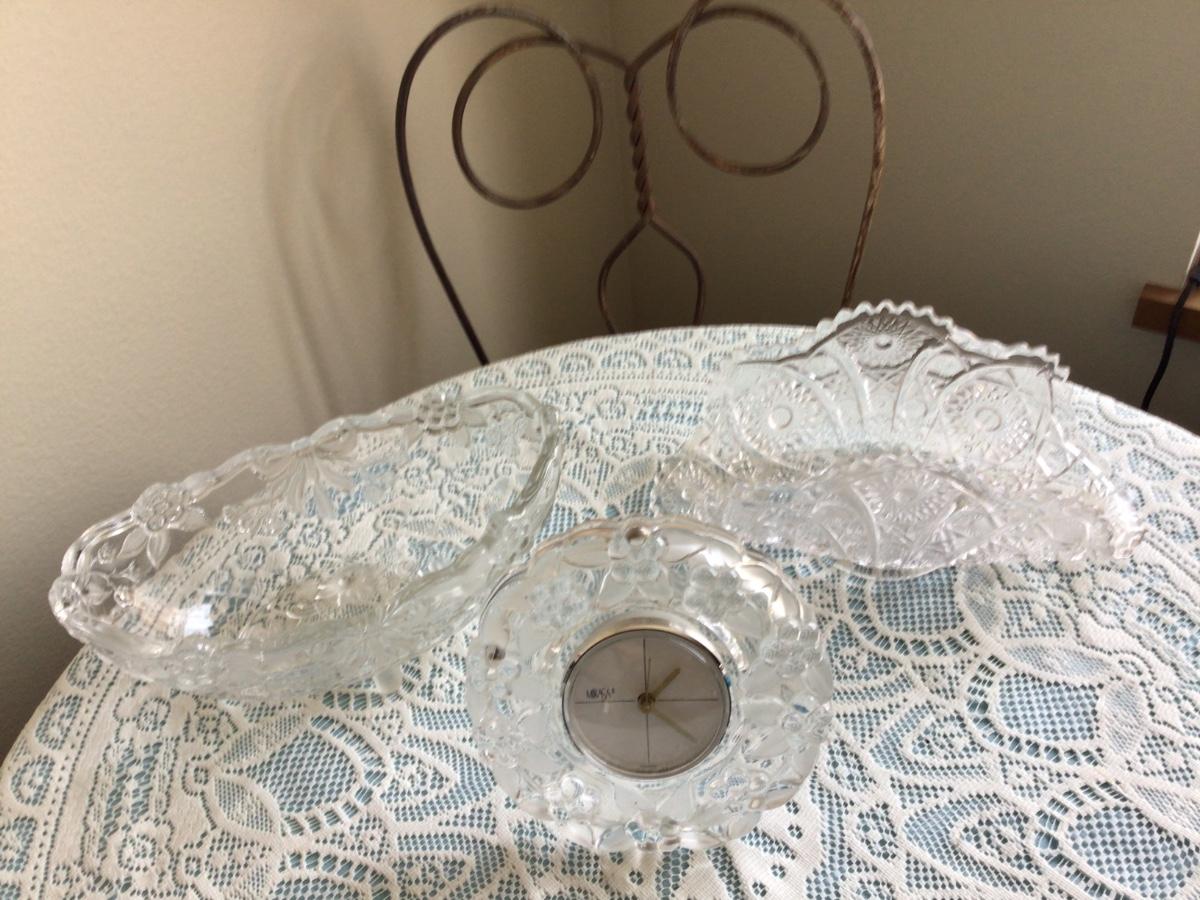 You get a nice Mikasa crystal clock, great cut glass folded plate, and a very nice footed bowl.