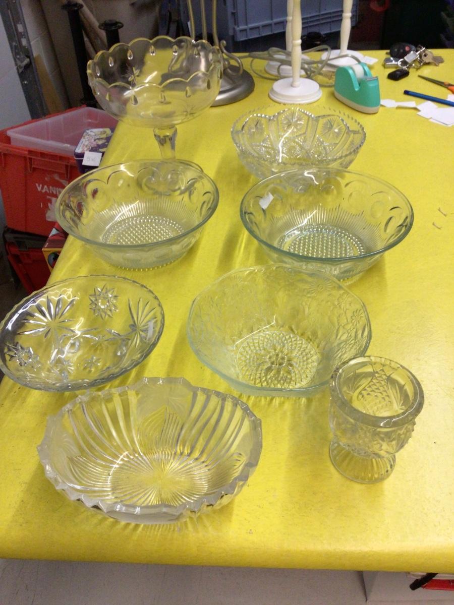 You get large compot, three large serving bowls, three medium size serving bowls, and small vase.