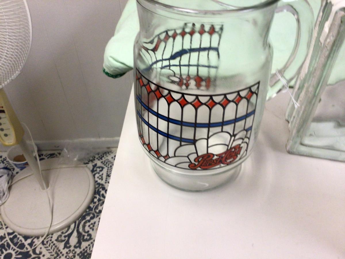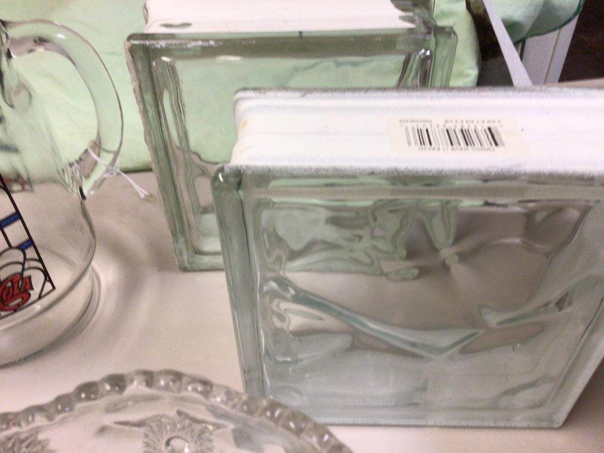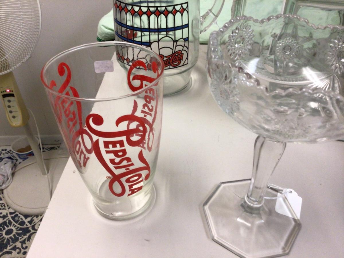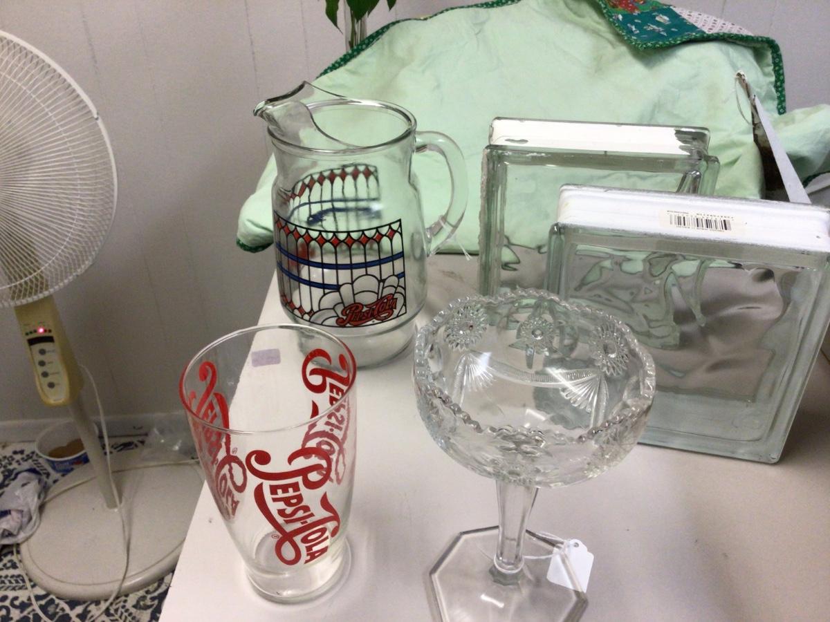 You get two glass bricks, Pepsi cola pitcher, Pepsi cola large glass, cut glass compote.