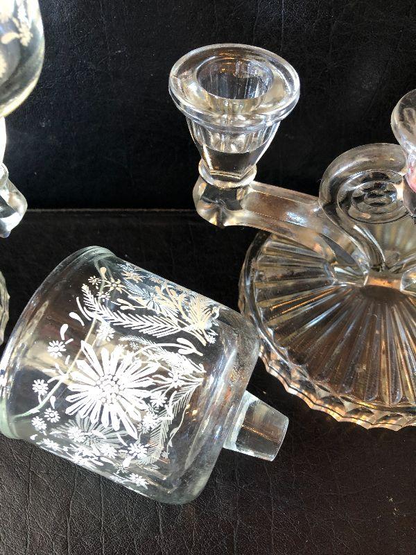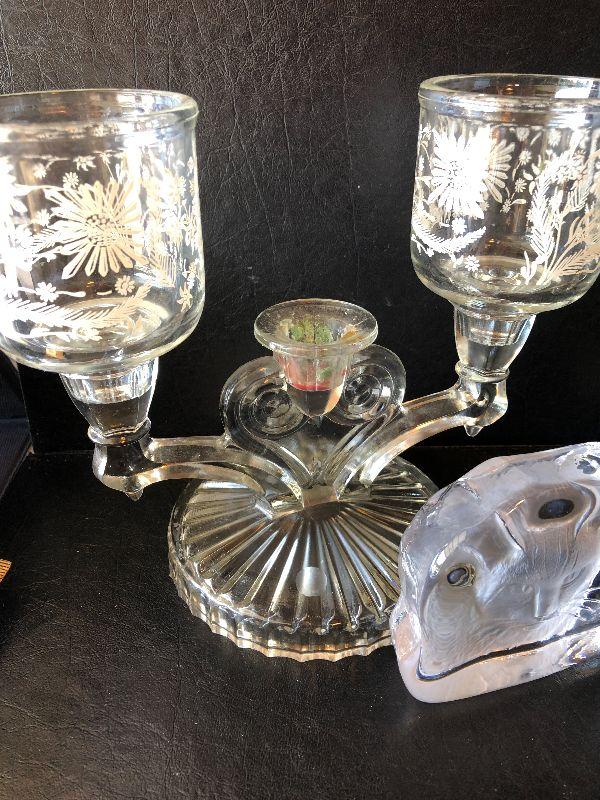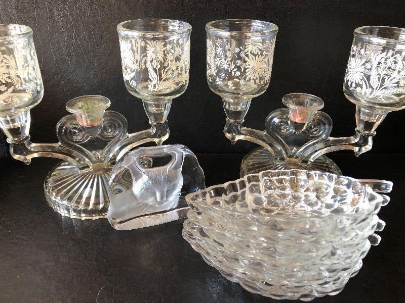 Candlesticks, Set of grape bowls crystal cat weight and more