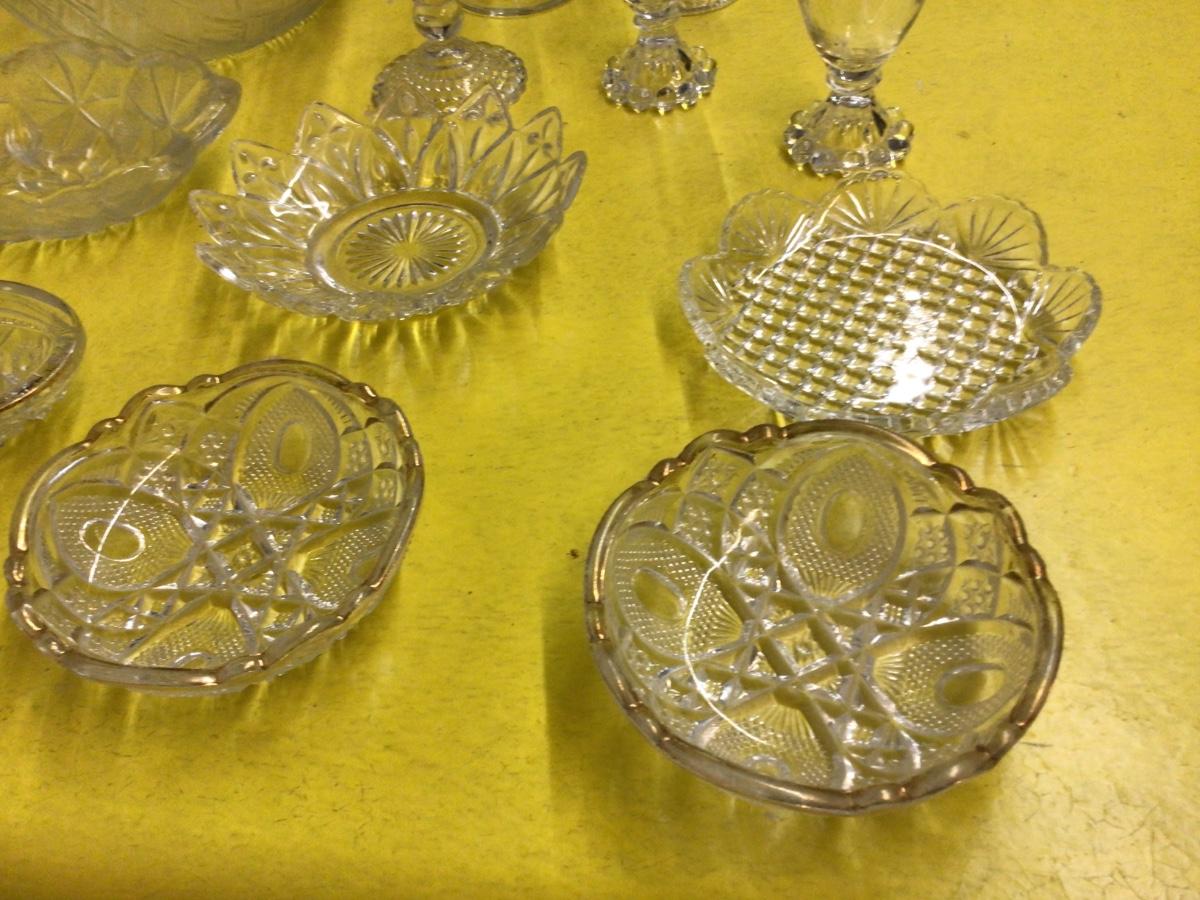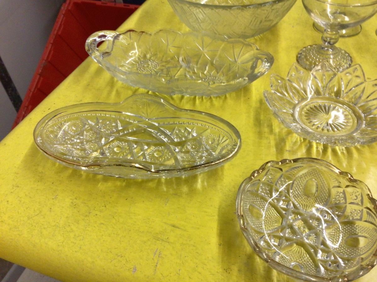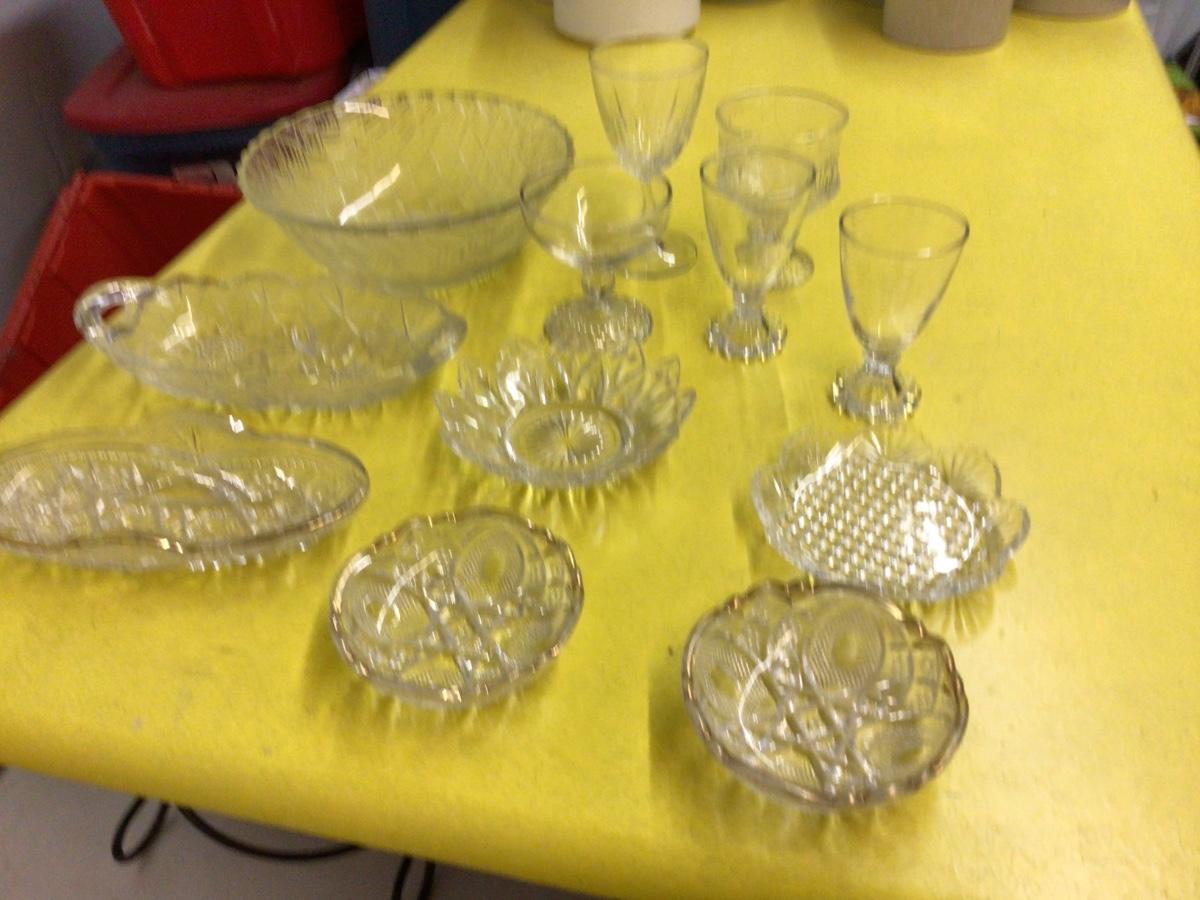 You get a variety glassware. Large serving bowl, two oval serving trays, four small round serving dishes, and 5 glasses only two match.