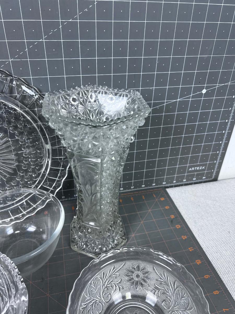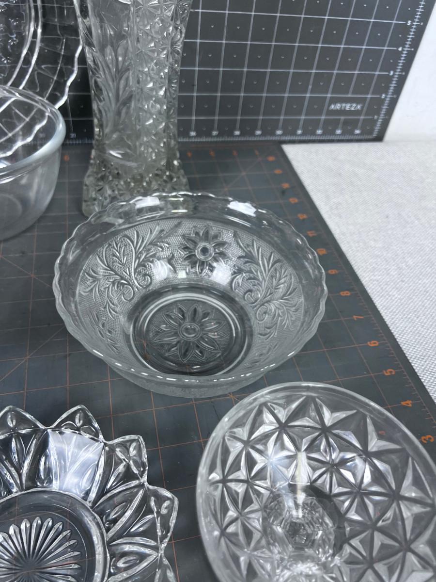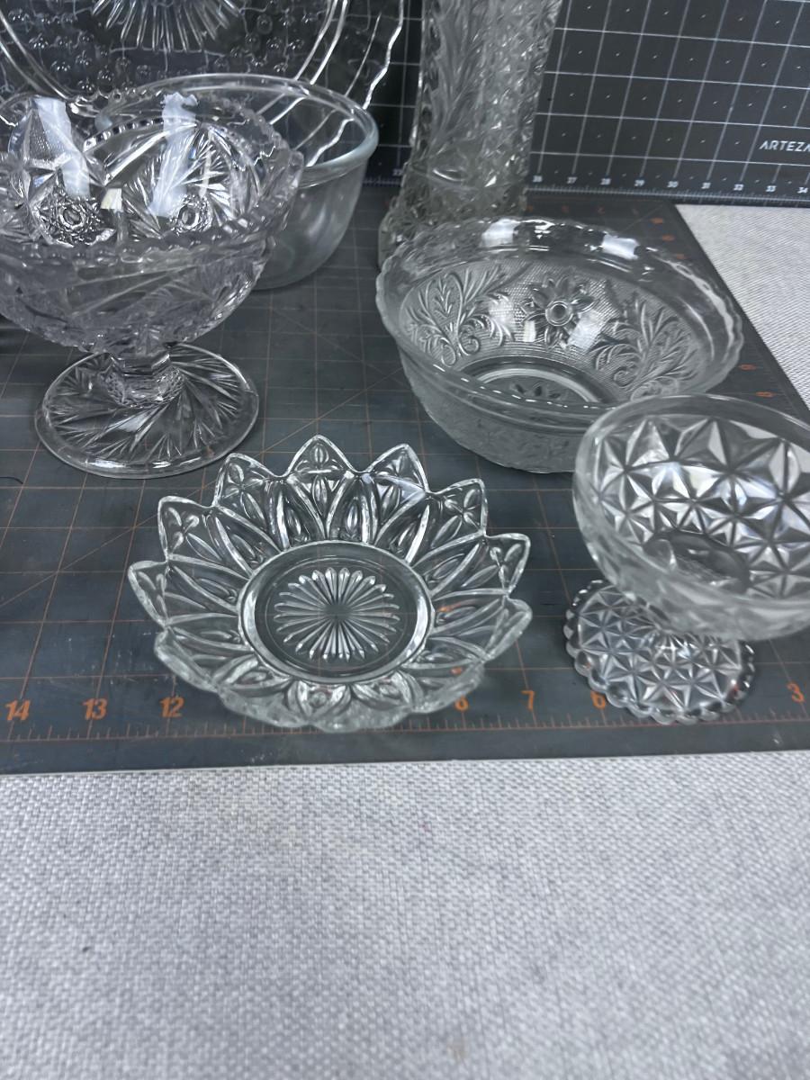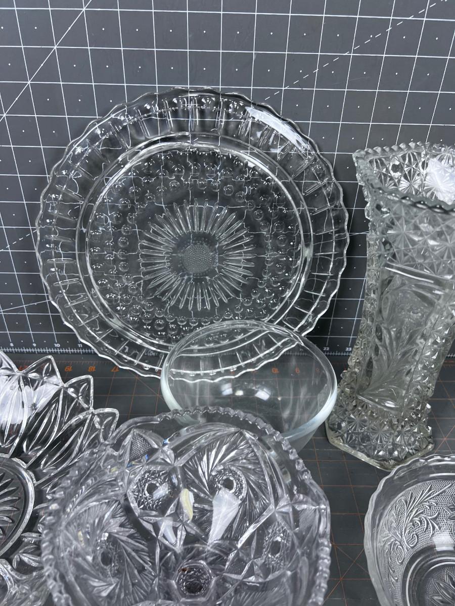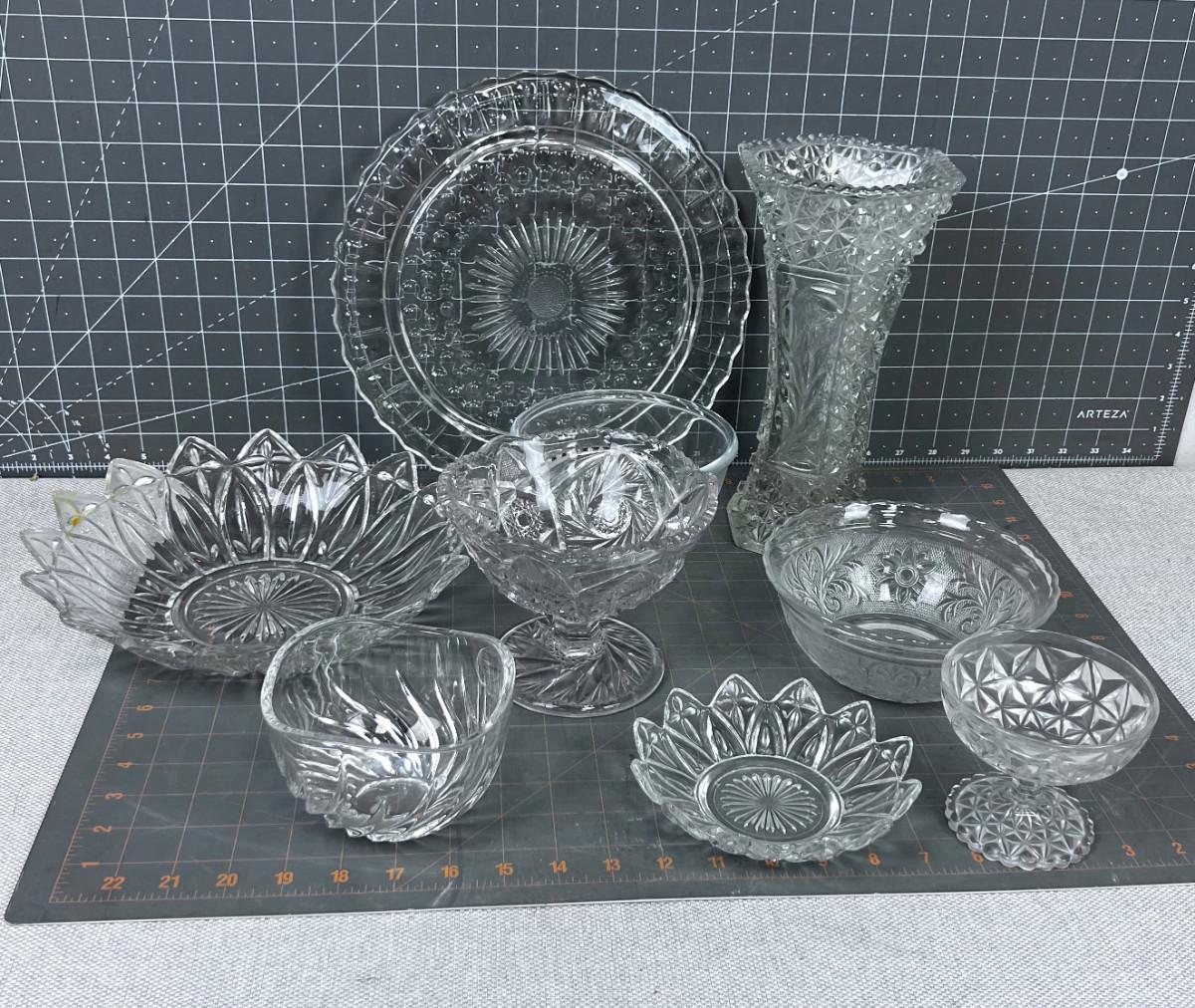 CLEAR Glass Lot 9 Pieces Mostly Press some Cut Crystal