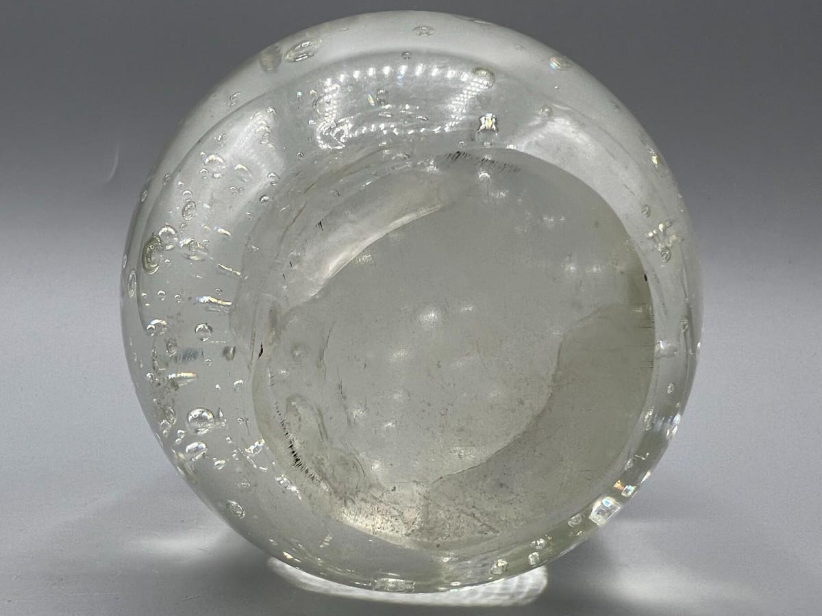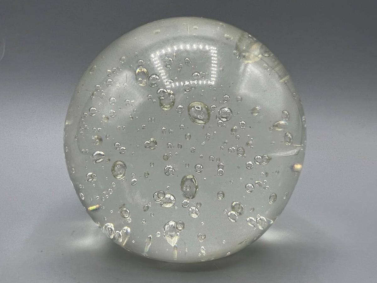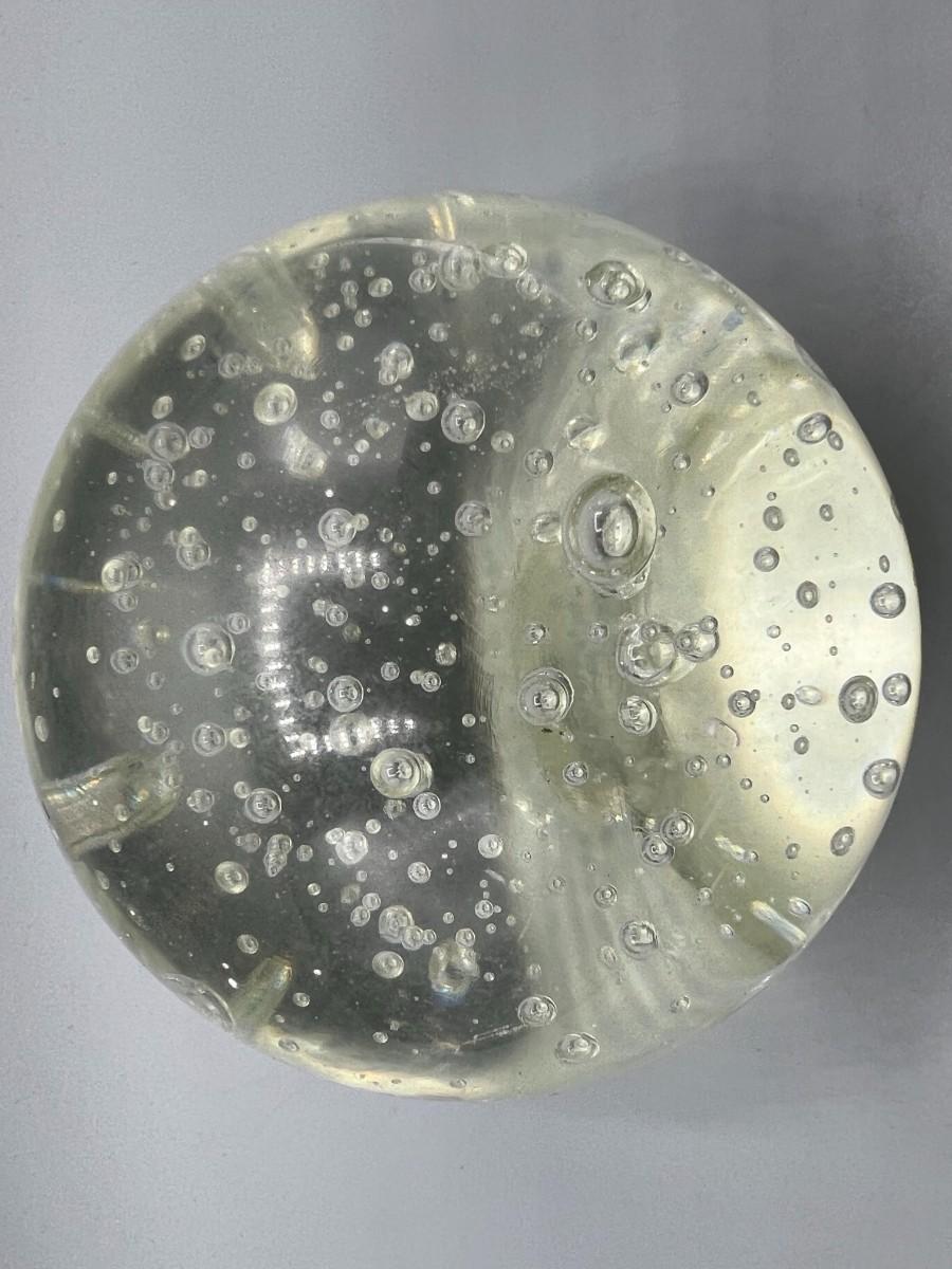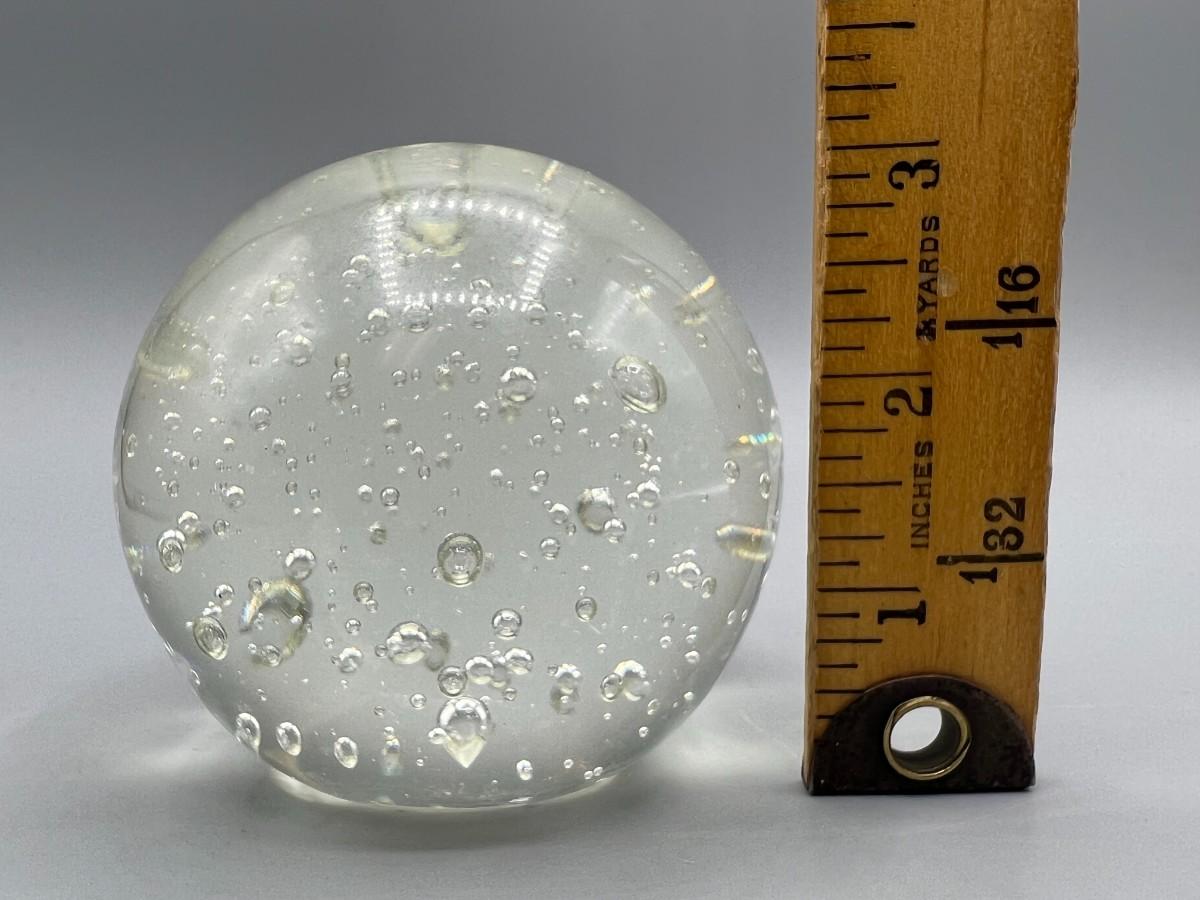Clear Glass Paperweight Desktop Bubble Globe, there is some light wear, but there is no significant cracks or chips to the paper weight and is in good useable condition. Check pictures for more details and for sizing.
