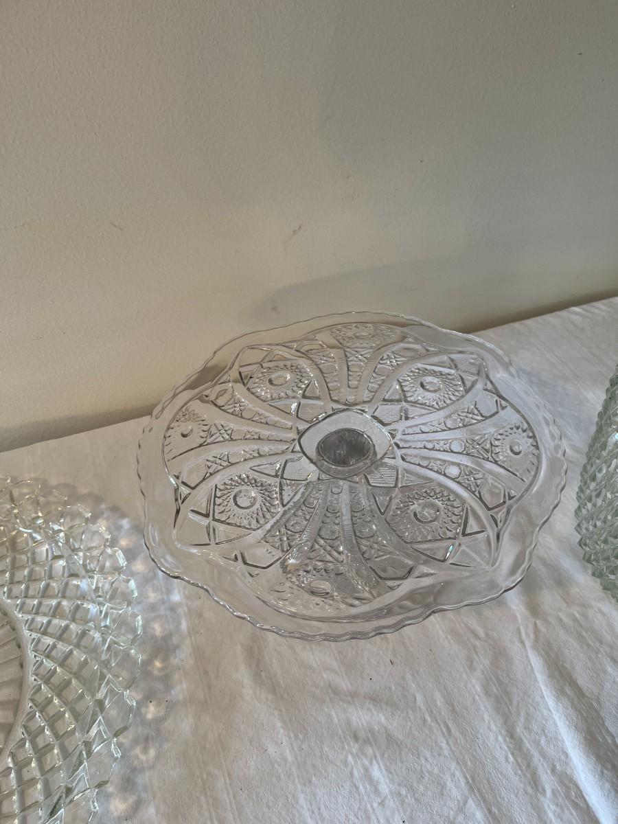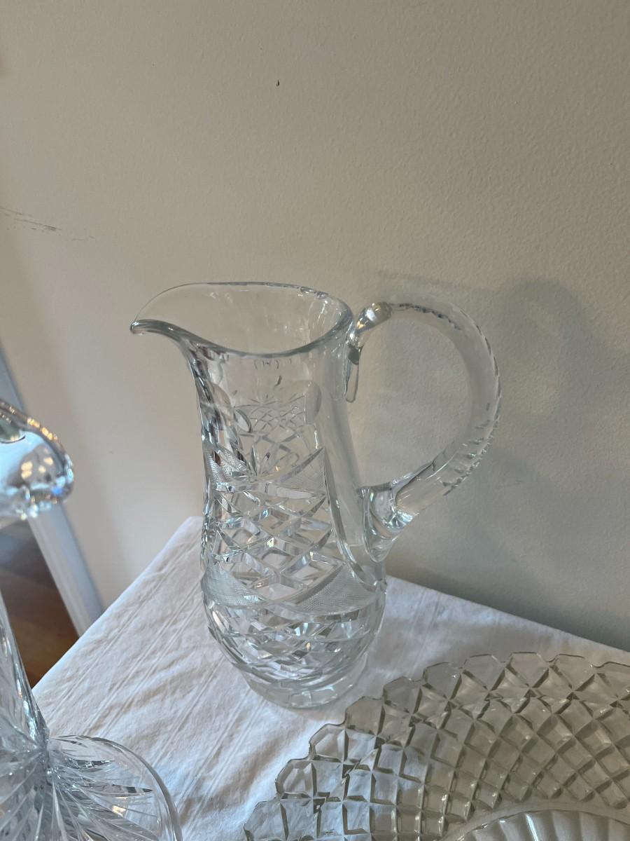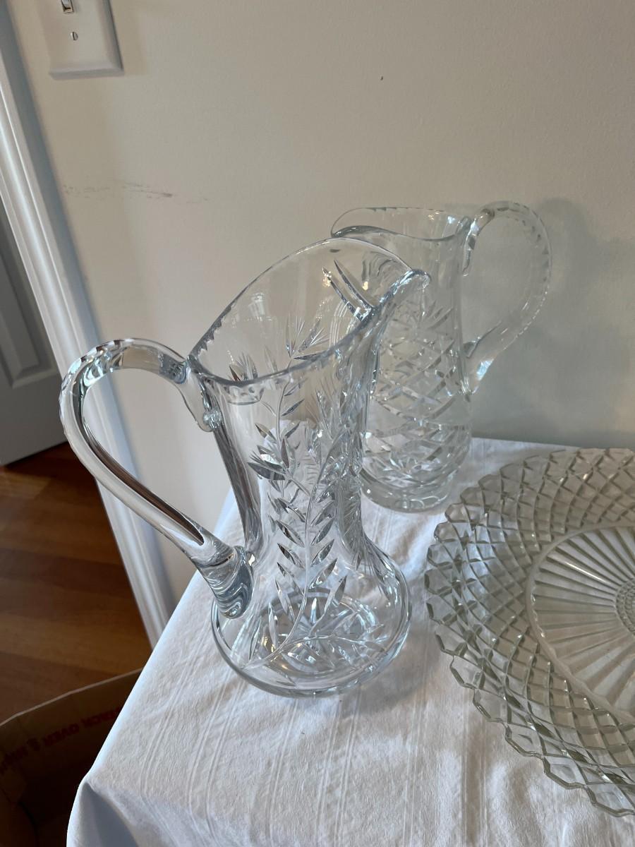 Clear Glass Pitcher, Cake Plate and Platter