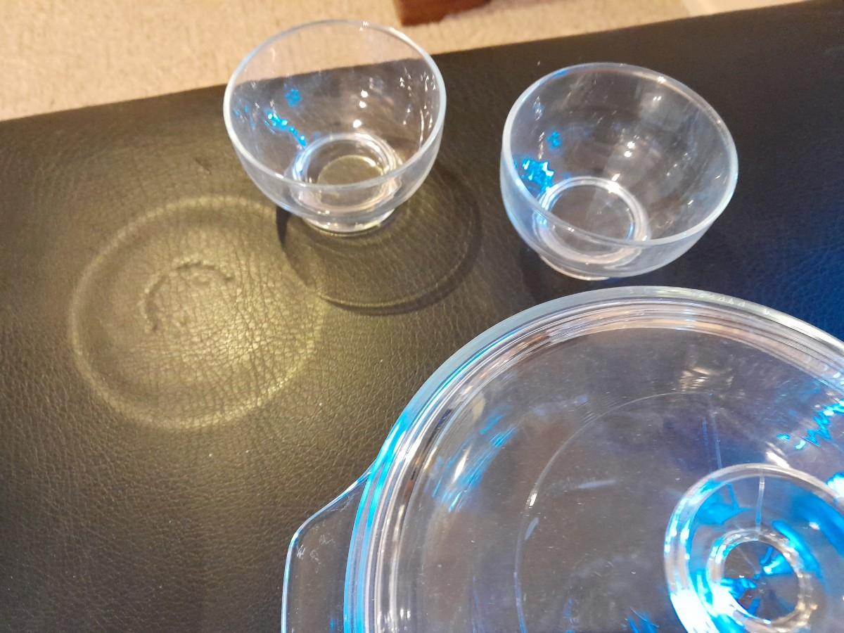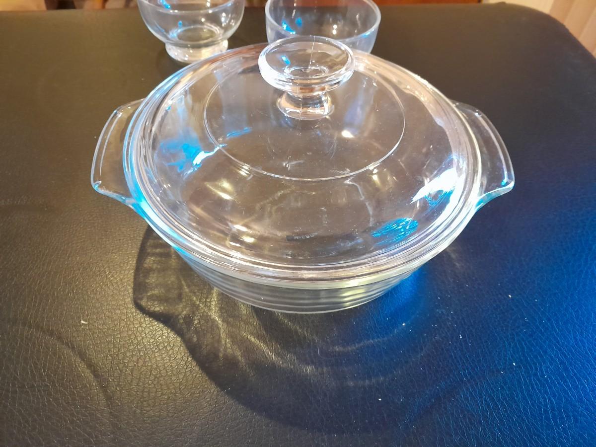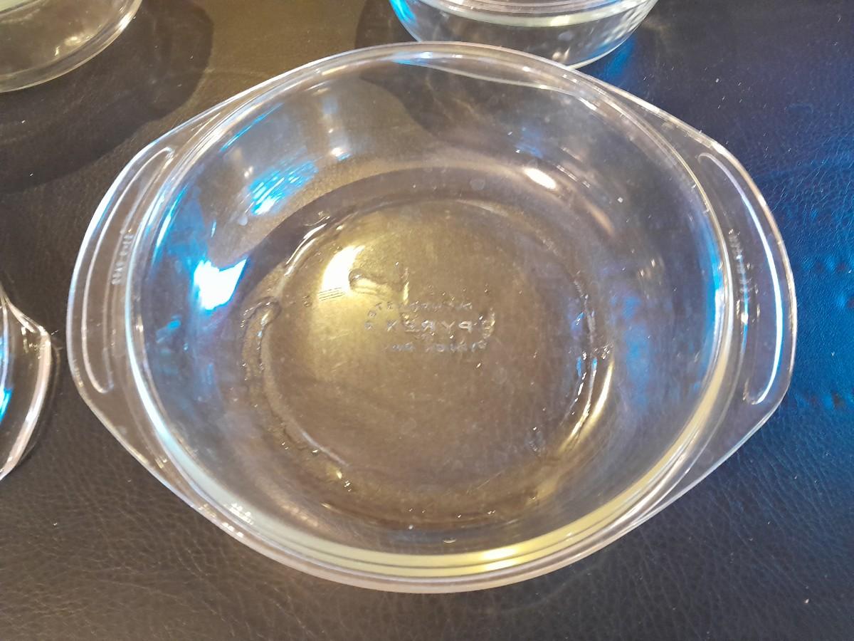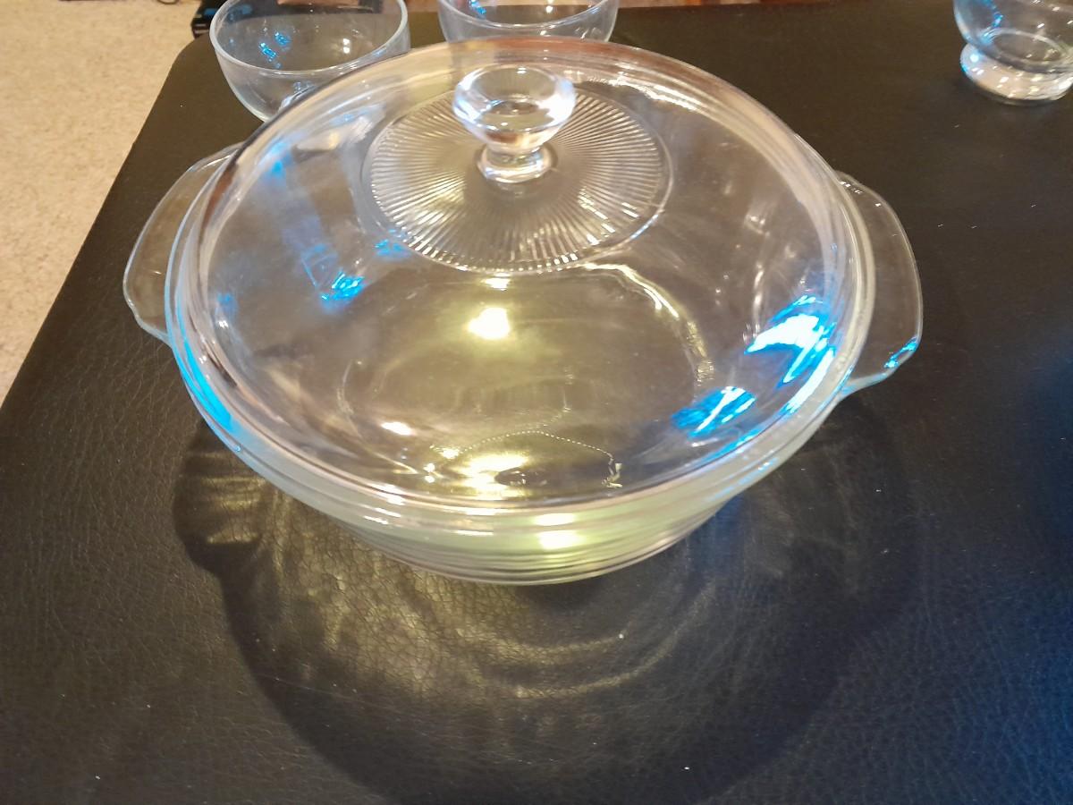 CLEAR GLASS PYREX DISHES BOWLS WITH LIDS AND SMALLER SERVING BOWLS
