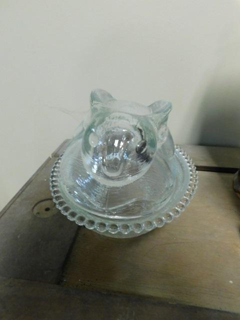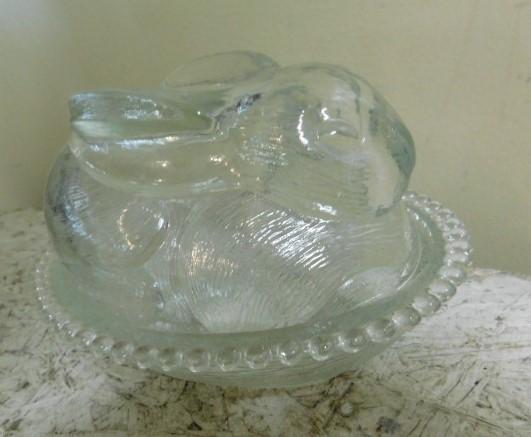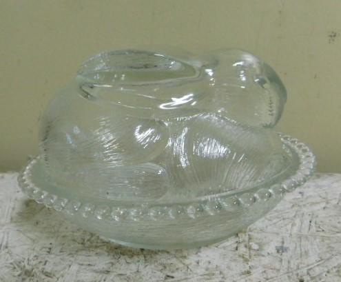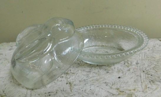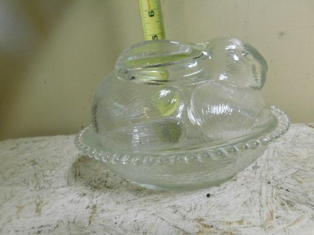 Clear Glass Rabbit on a Nest Candy Jar 7"