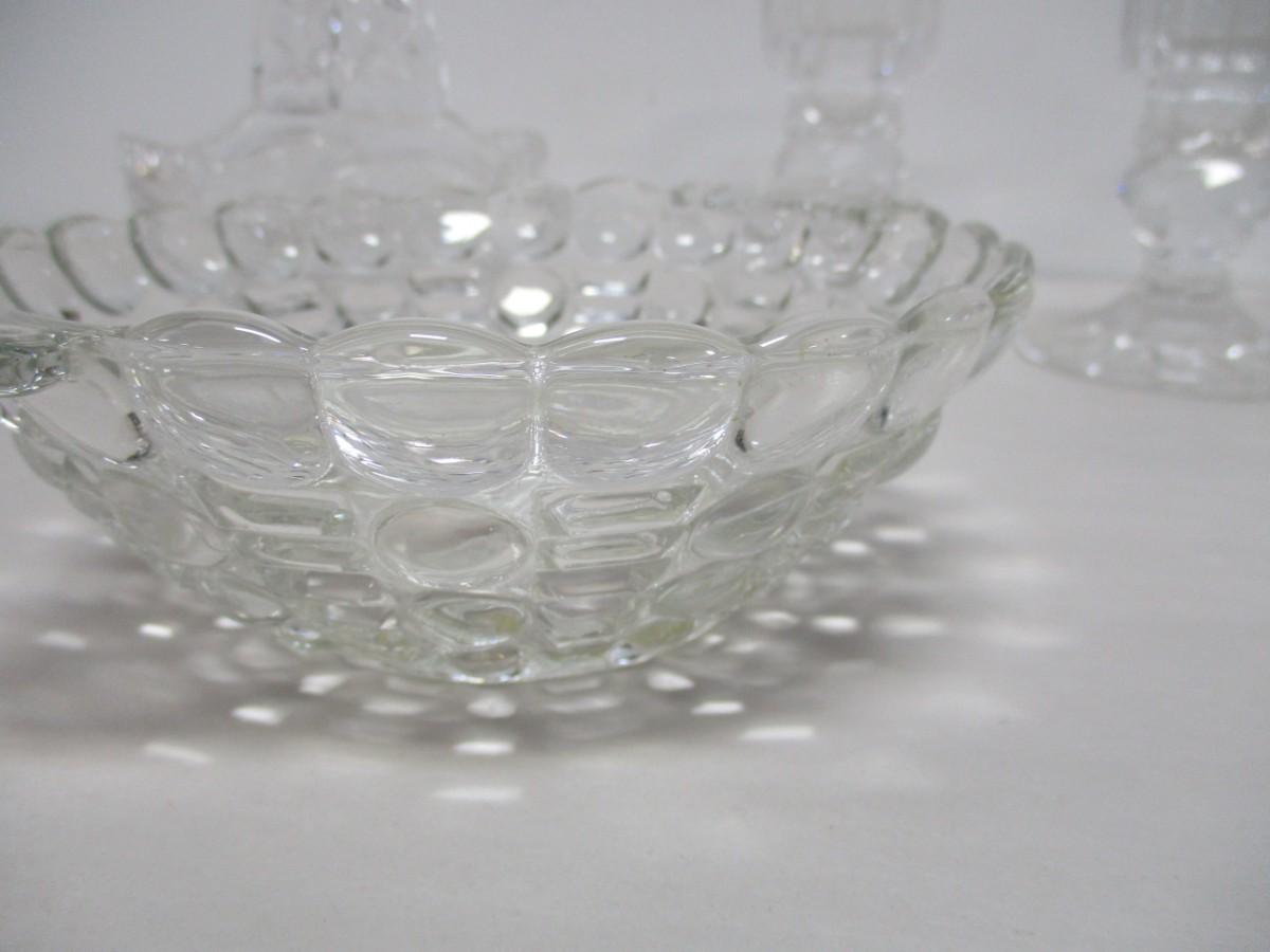 Clear Glass Serving Items & Candle Sticks