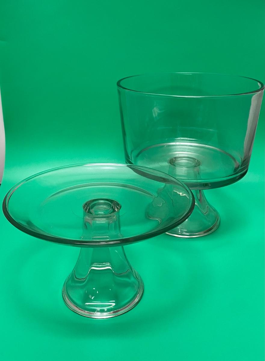Clear Glass Serving Set Pedestal Plate Trifle Bowl