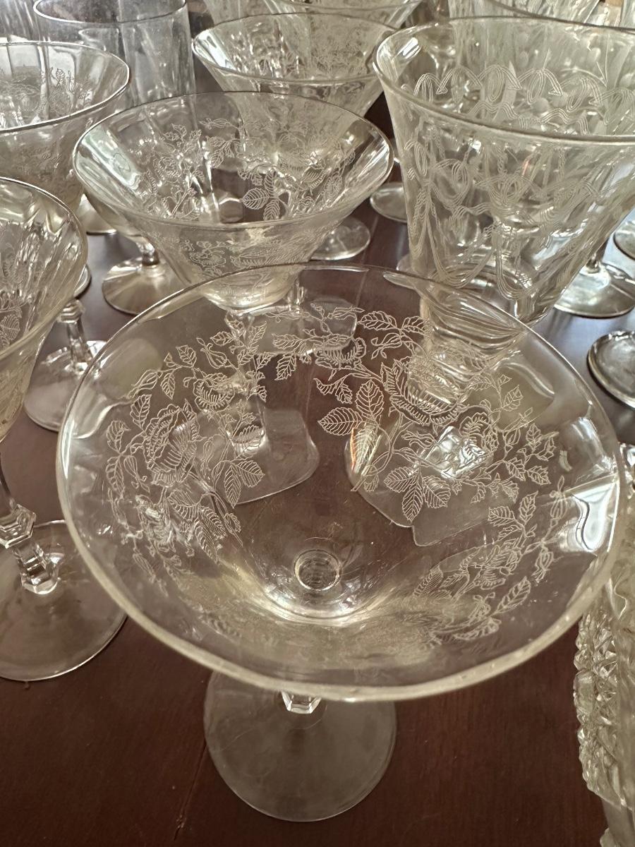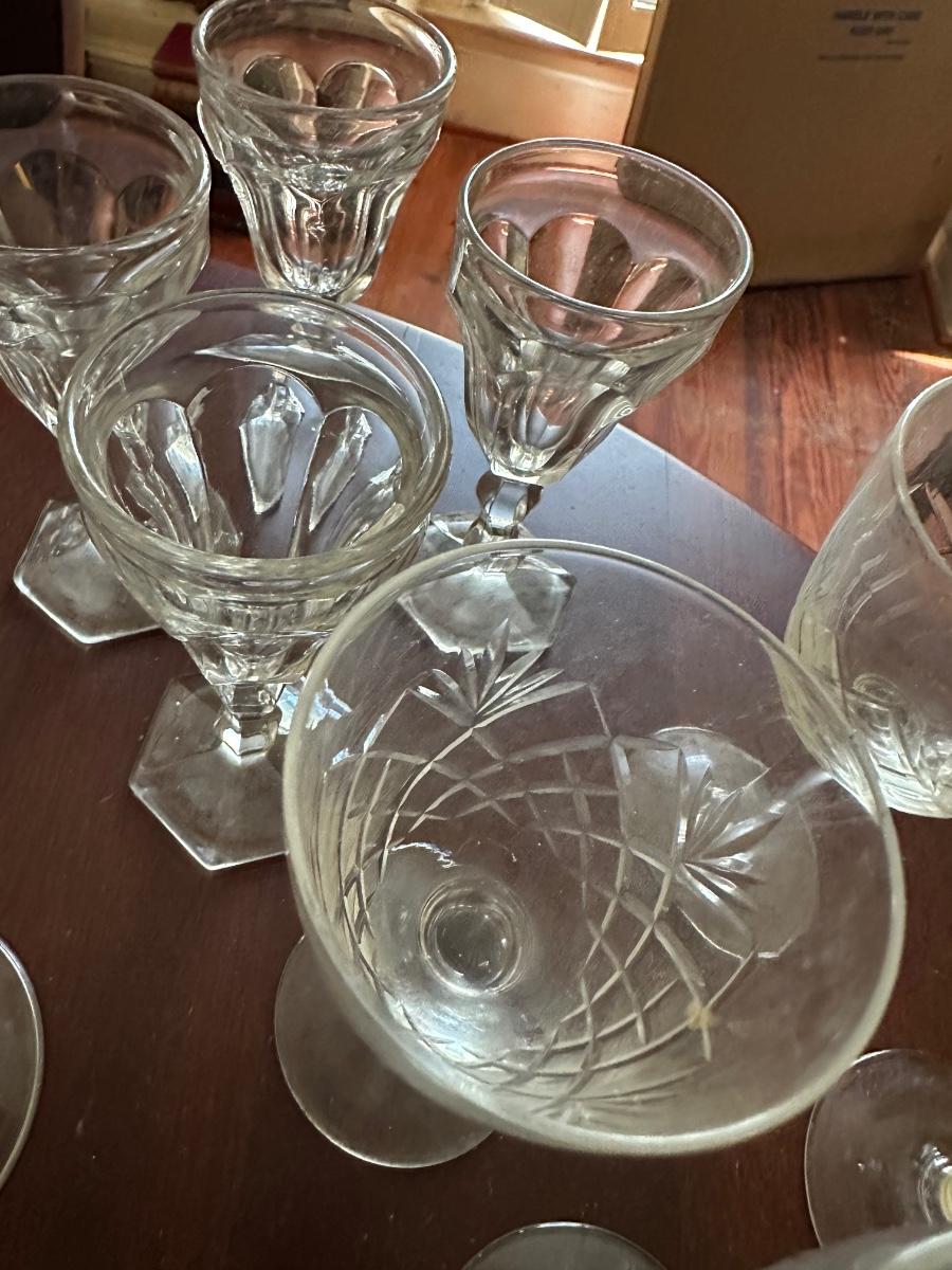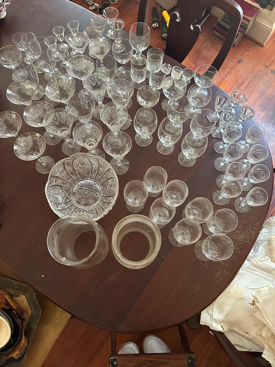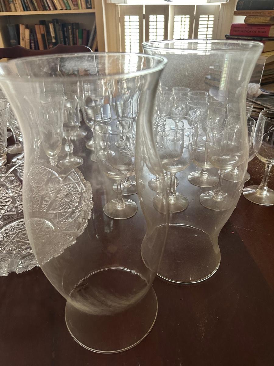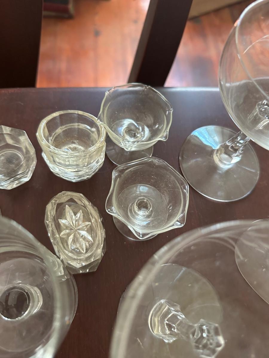 CLEAR GLASS WARE ON TABLE AS PICTURED