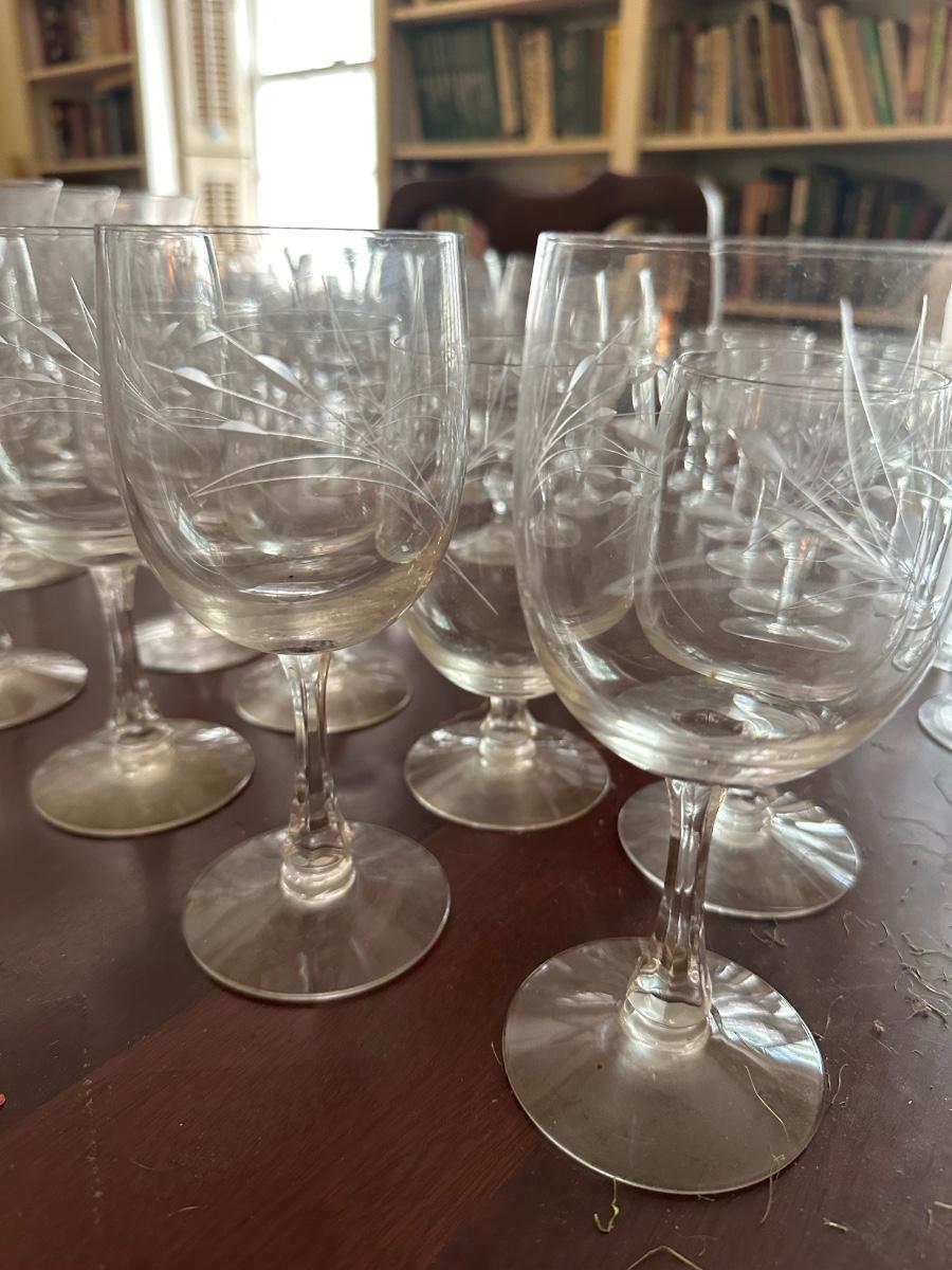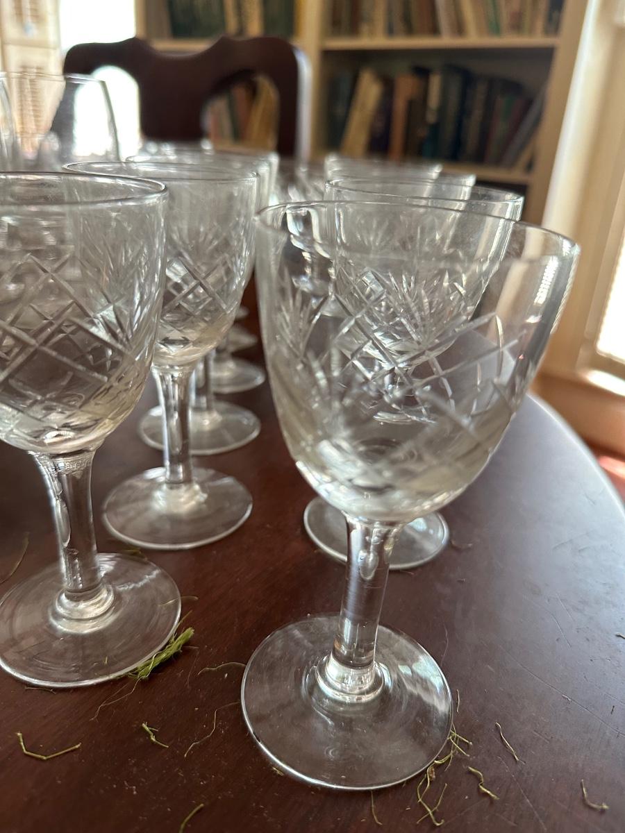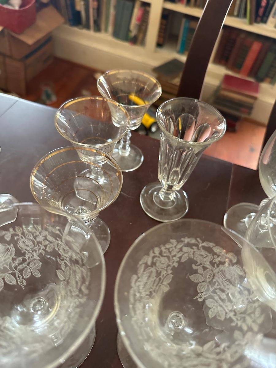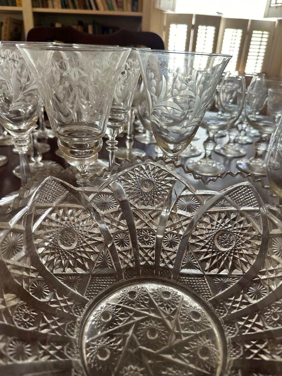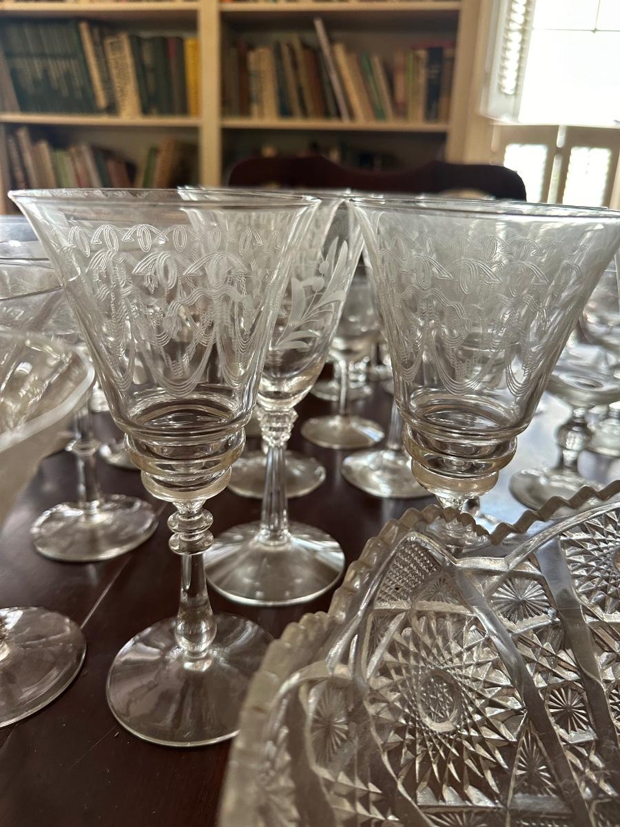 CLEAR GLASS WARE ON TABLE AS PICTURED