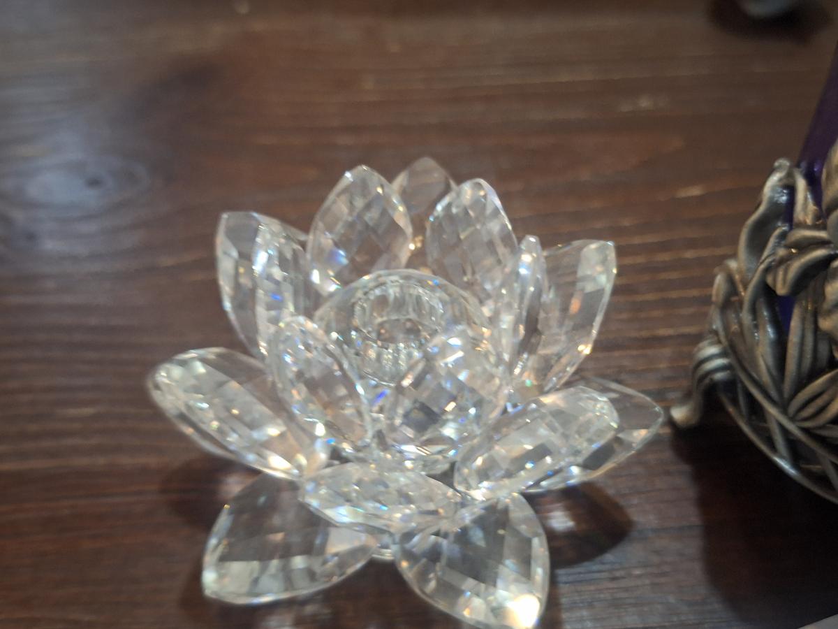 Clear lotus crystal flower and vintage gobalt votive candle holder