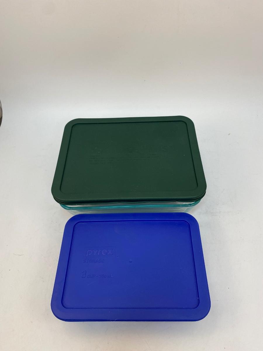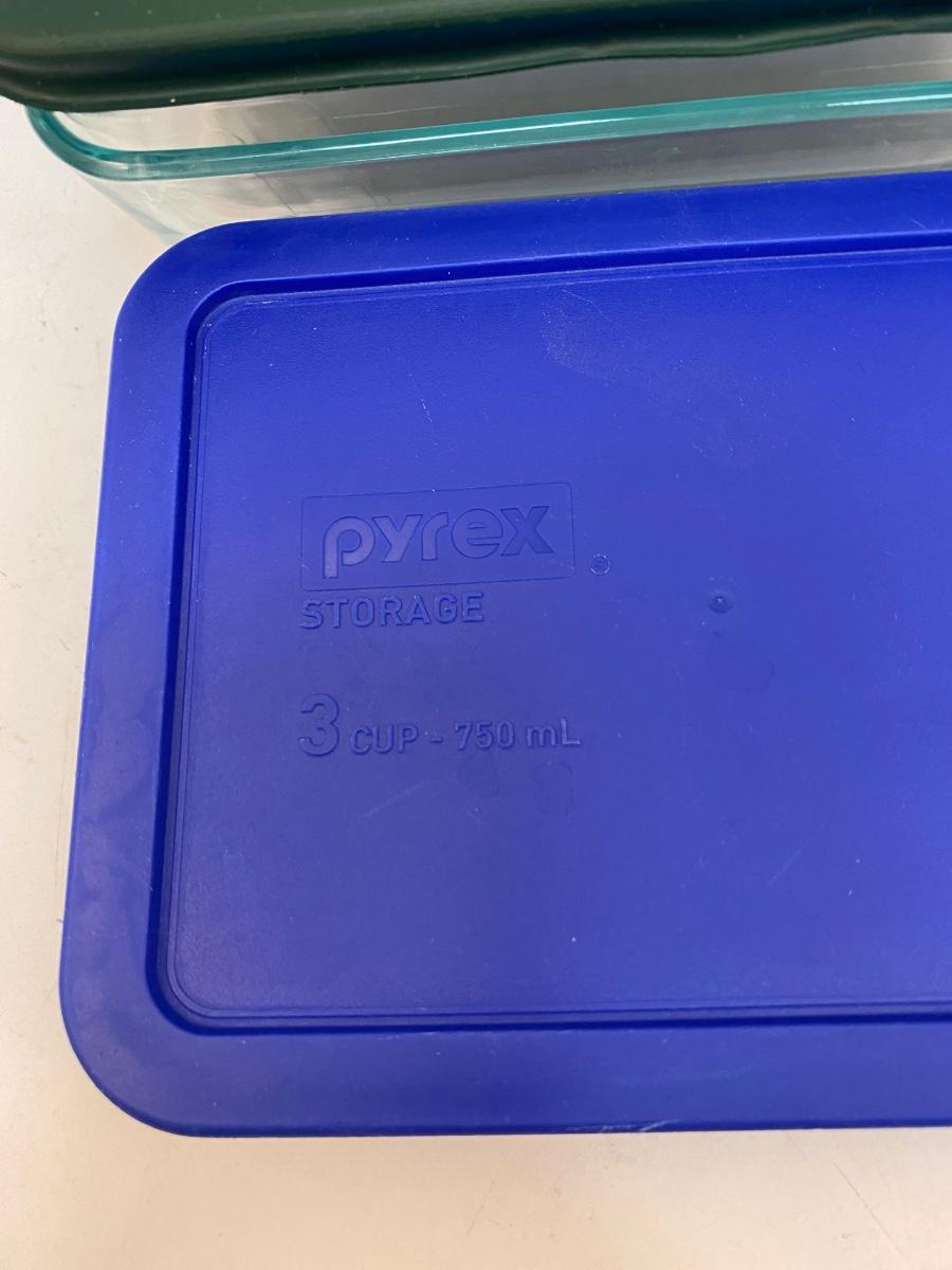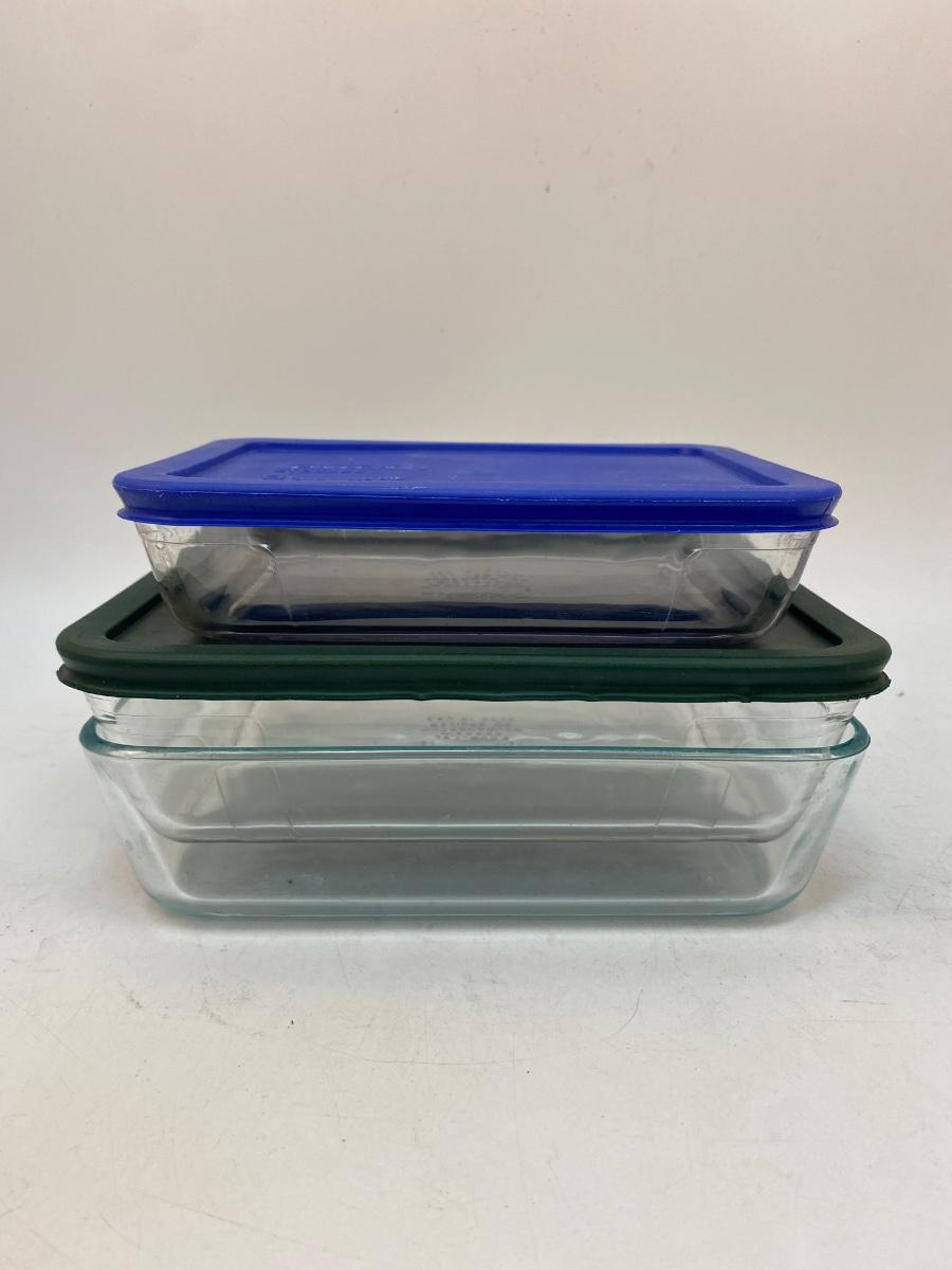 Clear Pyrex Food Storage Containers with Lids. Set of 3. One lid missing but the larger containers share same lid size. Good condition. 3 cup and (2) 6 cup size dishes.