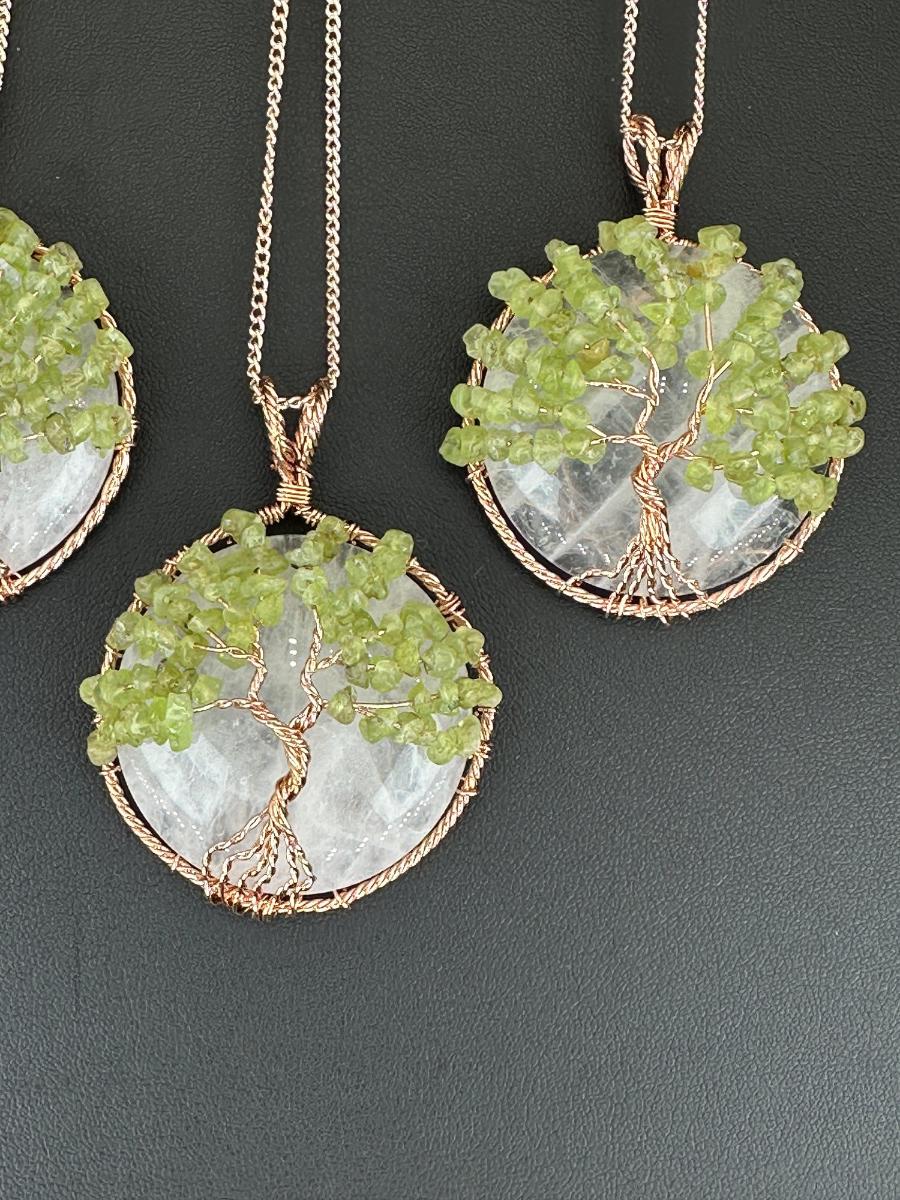 1. Clear Quartz Gemstone Tree Of Life Necklace Lot