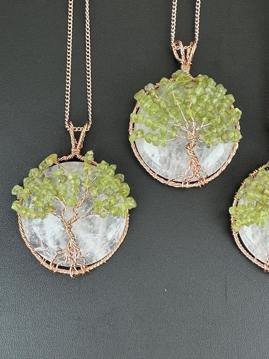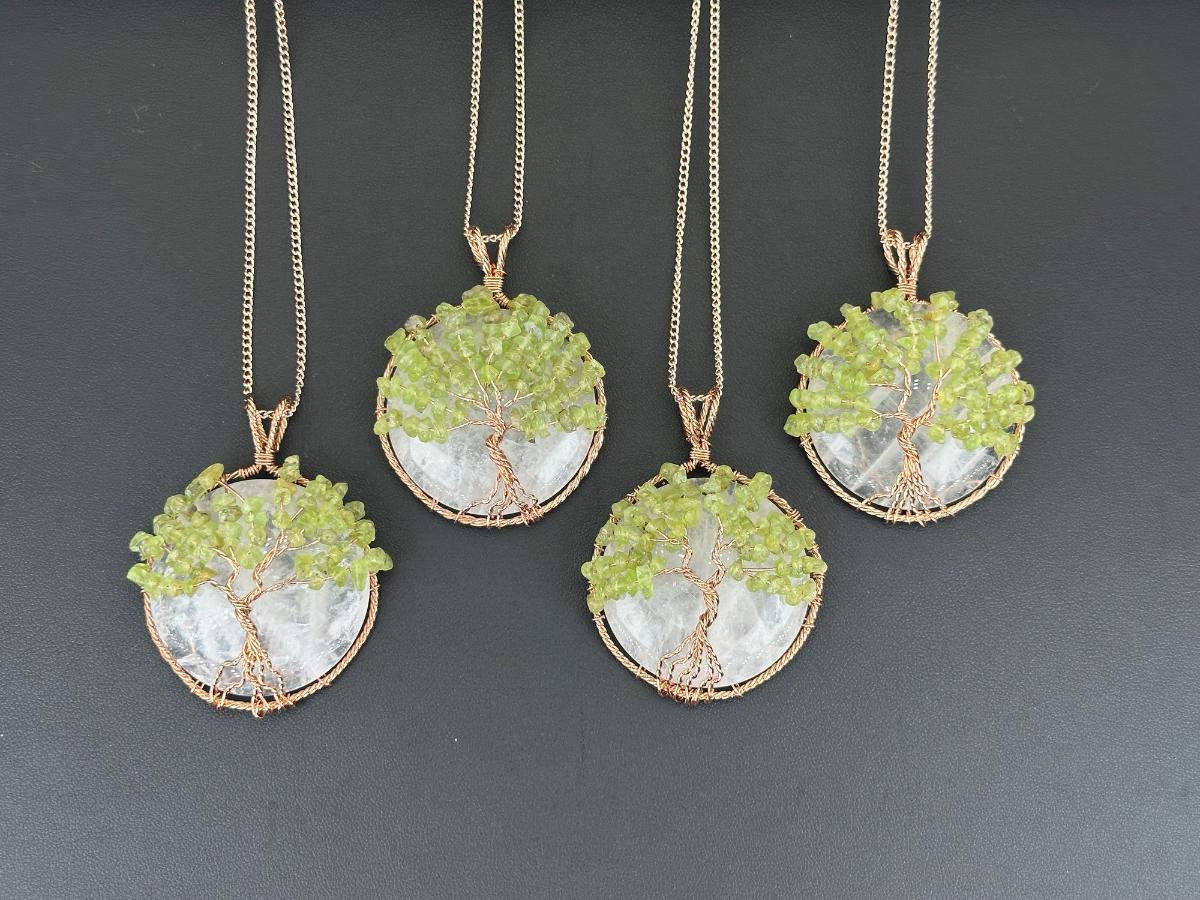Clear Quartz Gemstone Tree Of Life Necklace Lot