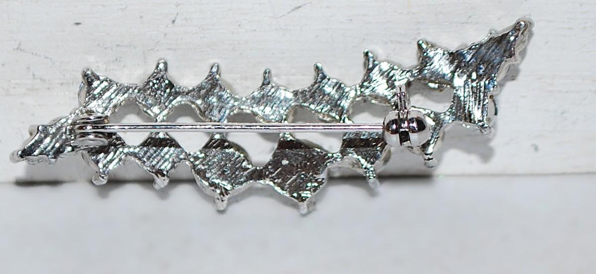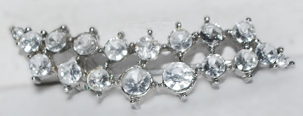 Clear Round 18 Stones BAR BROOCH (2" x ½") on a Silver Tone Setting